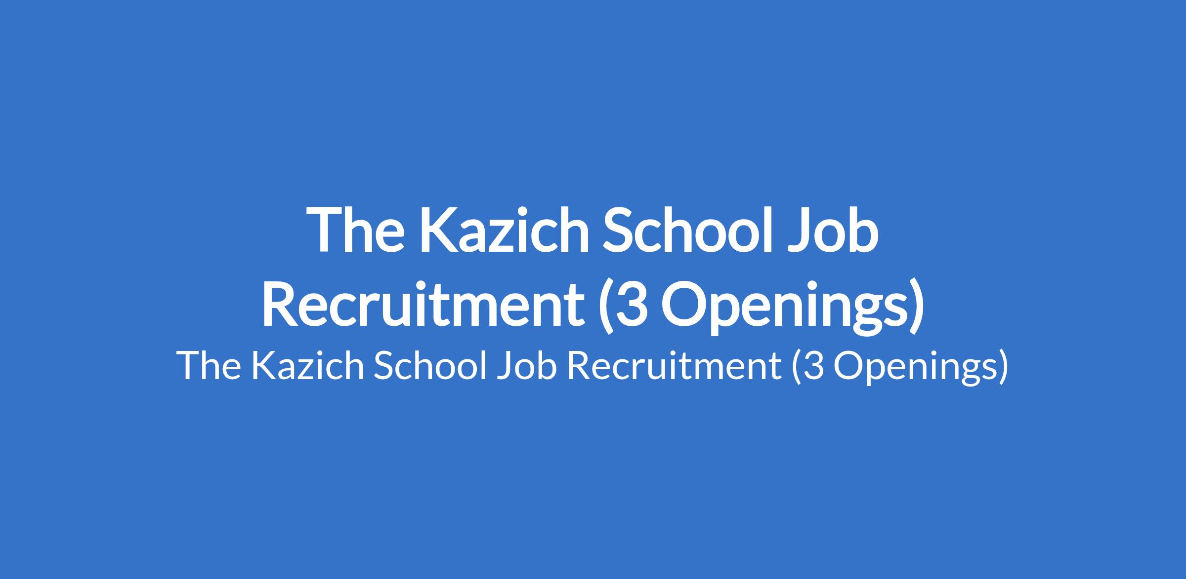 The Kazich School Job Recruitment (3 Openings)