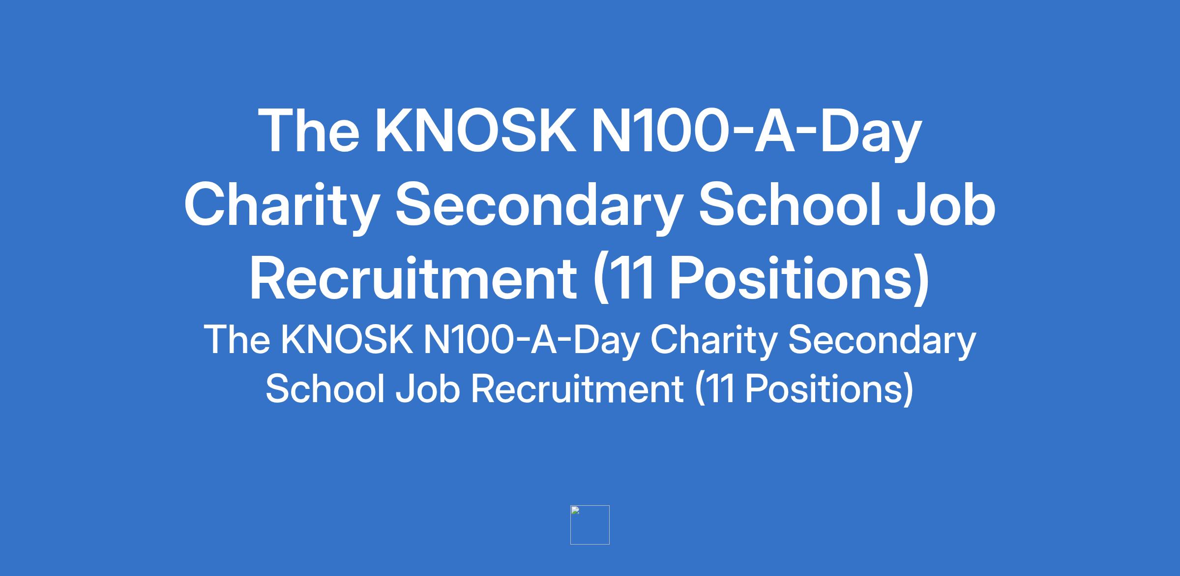 The KNOSK N100-A-Day Charity Secondary School is recruiting suitably qualified candidates to fill the following positions in Abuja: Mathematics Teacher, Guidance Counsellor, Video Editor, Program Officer, Accountant, School Driver, and Secondary School Teacher.