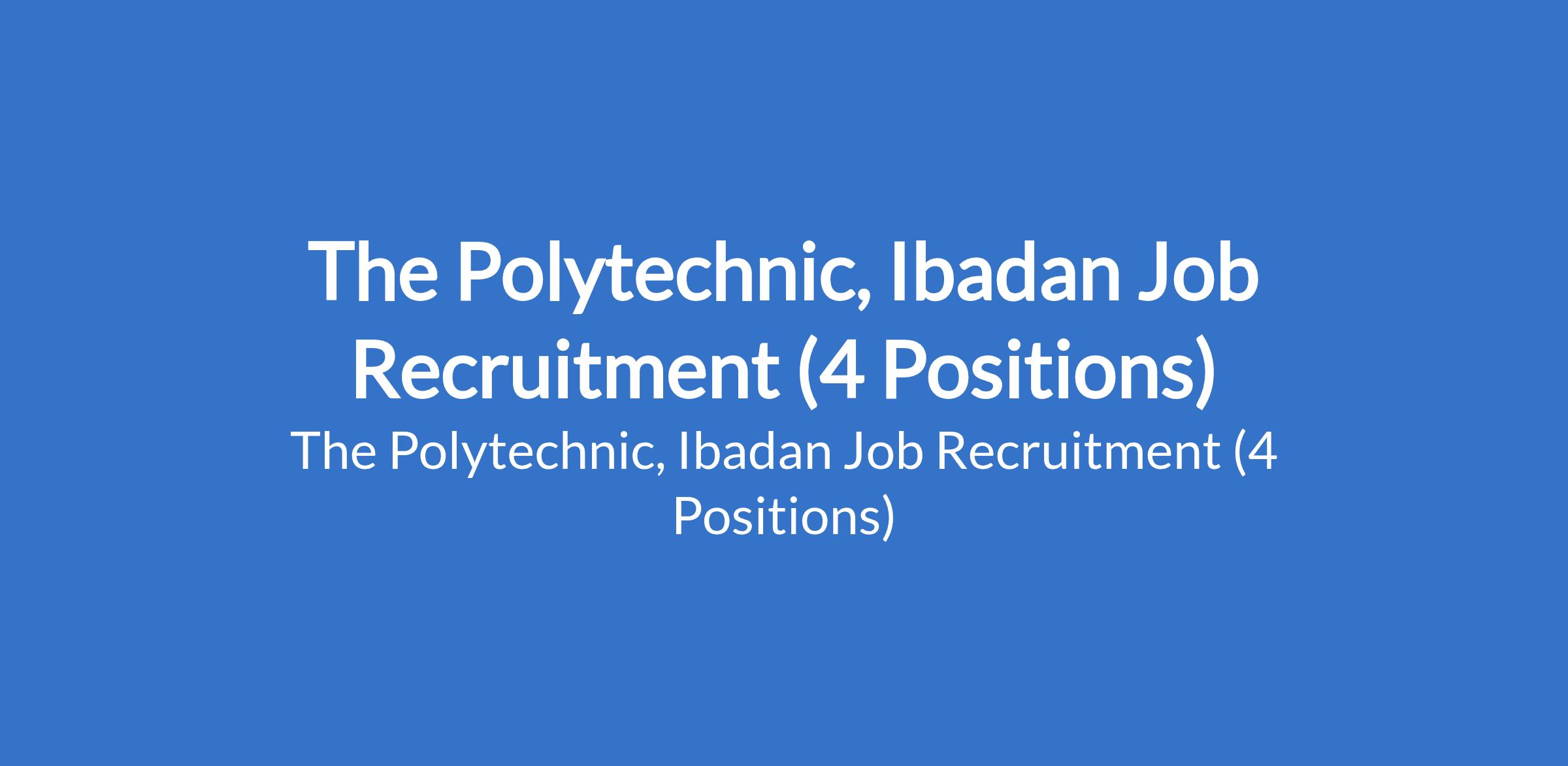 The Polytechnic, Ibadan Job Recruitment (4 Positions)