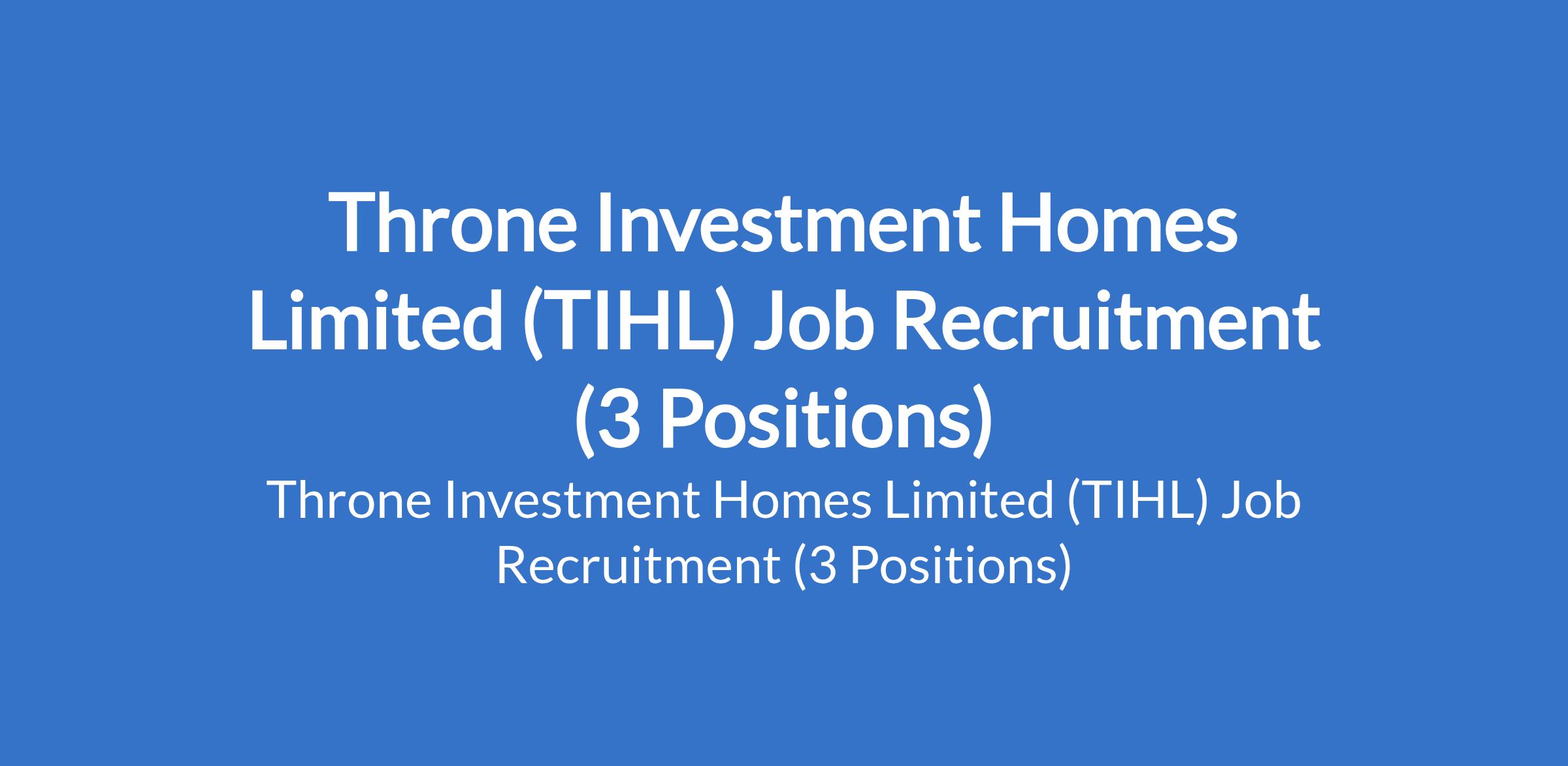 Throne Investment Homes Limited (TIHL) Job Recruitment (3 Positions)