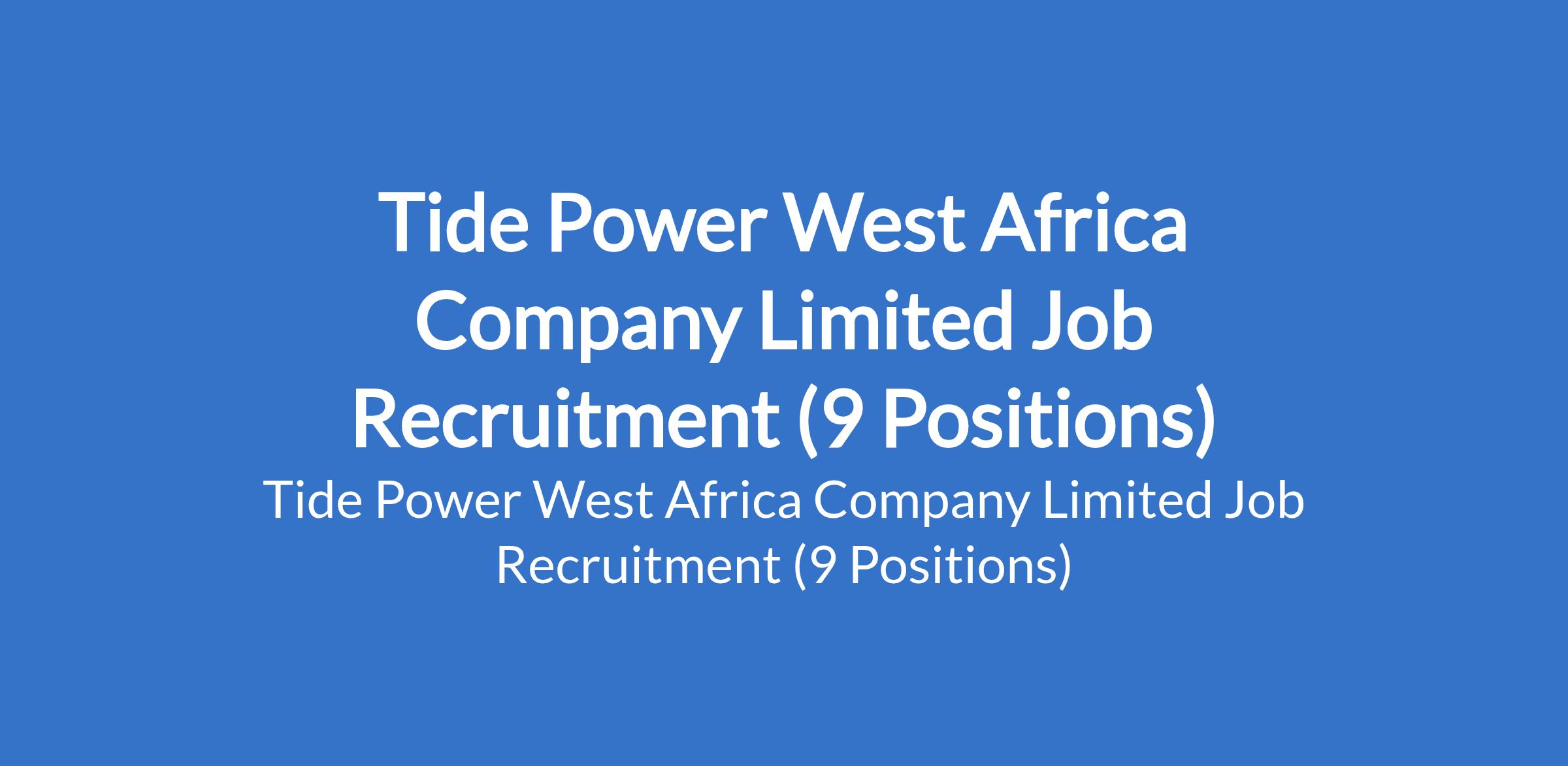 Tide Power West Africa Company Limited is recruiting suitable candidates to fill the following positions in Abuja (FCT), Edo, Kano and Lagos States: Gas Senior Sales Representative, Diesel Senior Sales Representative, Executive Driver, Gas Senior Sales Representative, Gas Sales Manager, Executive Assistant to the GM, and Digital Marketer.