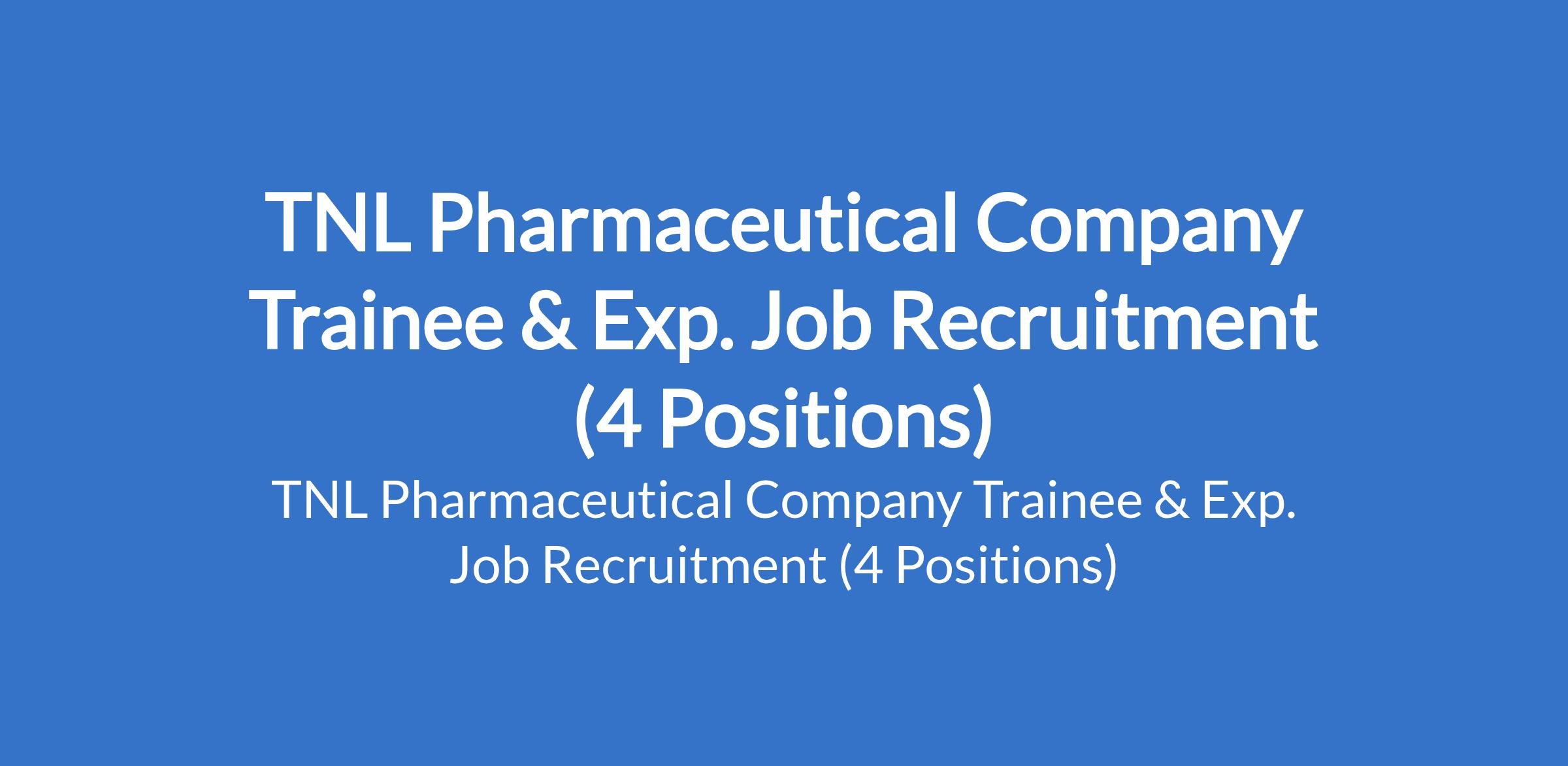 TNL Pharmaceutical Company is recruiting suitably qualified candidates to fill the following trainee and experienced positions in Abuja, Enugu and Lagos States: Production Pharmacist, Demand Generation Manager, Medical Sales Representative Trainee, and Accountant.