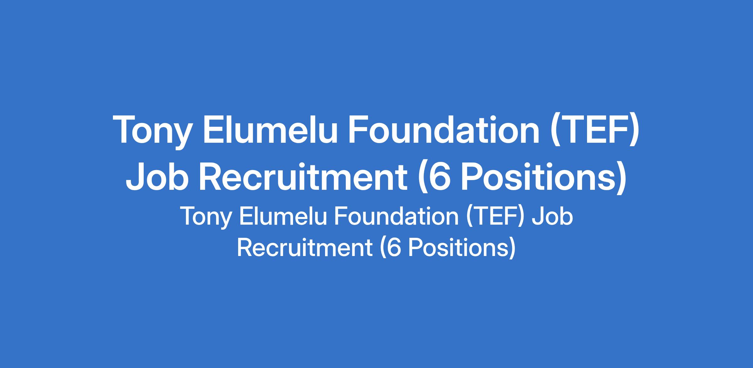 Tony Elumelu Foundation (TEF) is recruiting suitably qualified candidates to fill the following positions in Lagos State: Alumni & Mentorship Officer, Research Manager, Brand Officer, Internal Audit Officer, Partnerships Officer Entrepreneurship, and Programme Officer.