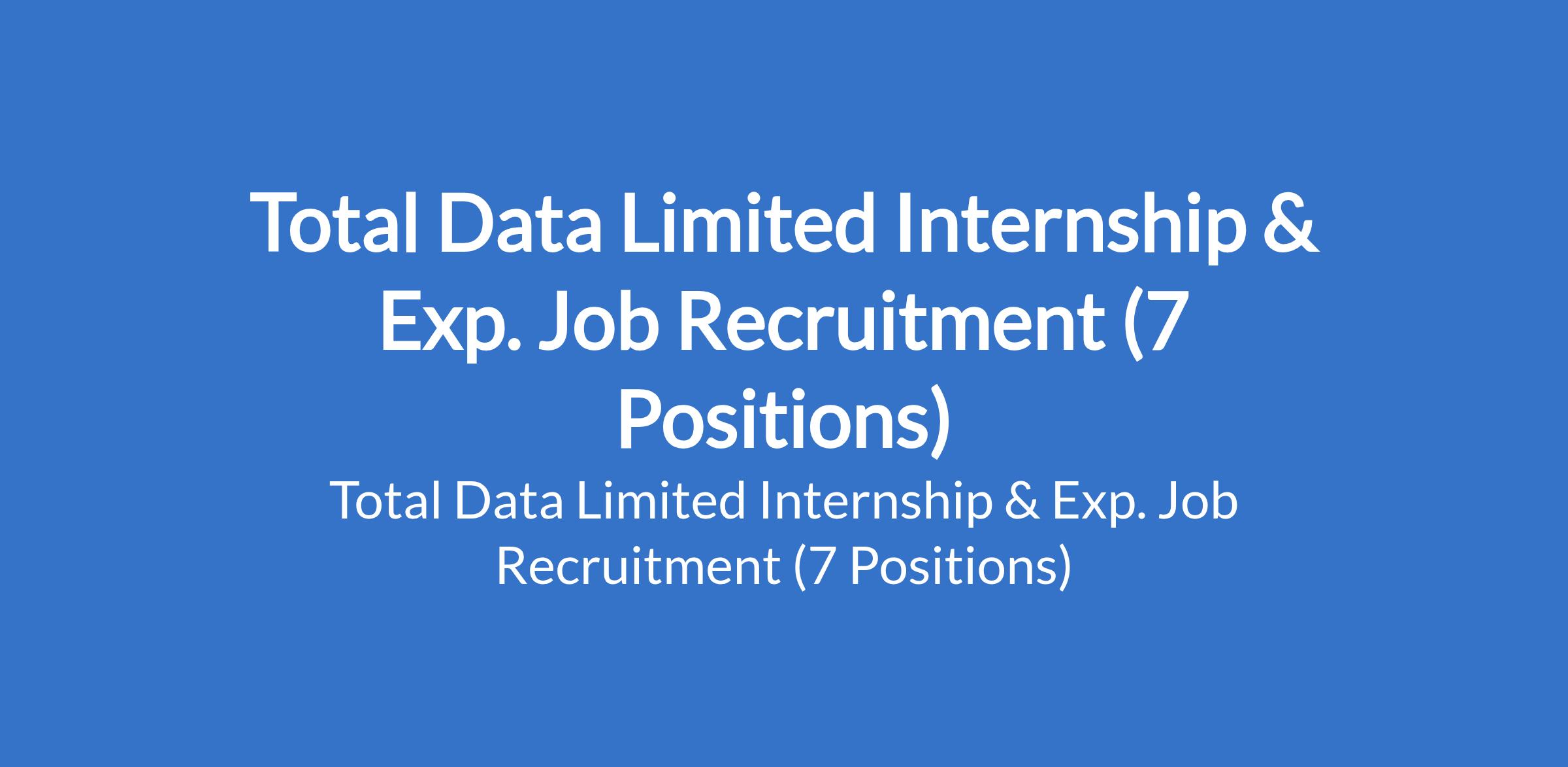 Total Data Limited is recruiting suitable candidates to fill the following internship and experienced positions in Lagos, Oyo, Osun, Ondo, and Ogun States: Driver, Sales Representative (ASO & TSO), Tax Accountant, International Sales Manager, Human Resources Intern, Digital Marketer, and Sales Representative.