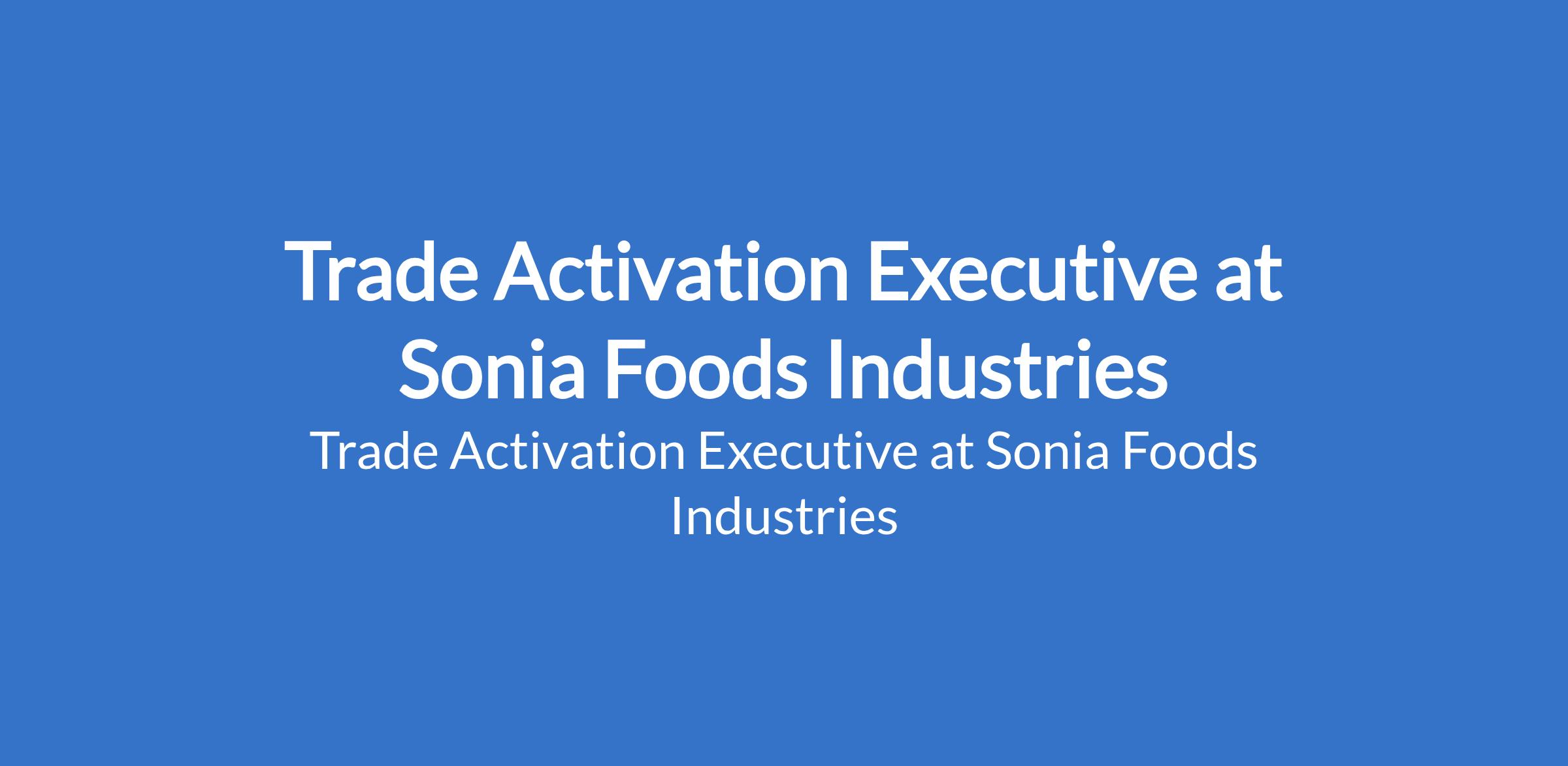 Sonia Foods Industries is recruiting to fill the position of: Trade Activation Executive. The position is located in Abuja (FCT). Interested candidates should possess a Bachelors Degree in any relevant field with 8+ years of work experience with a minimum of 2-3 years in Trade Marketing Management in the FMCG industry.