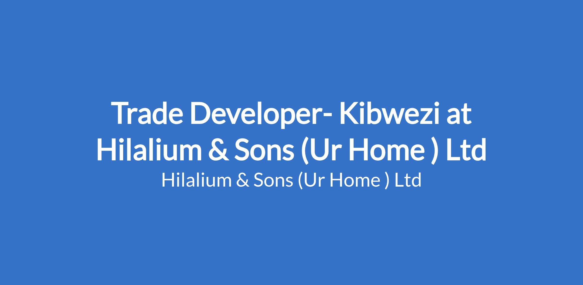 Trade Developer- Kibwezi at Hilalium & Sons (Ur Home ) Ltd