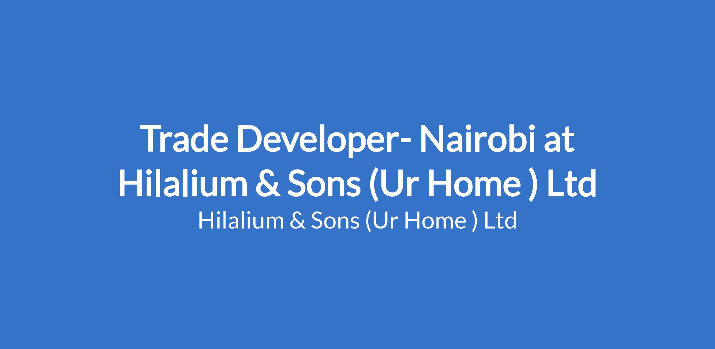 Trade Developer- Nairobi at Hilalium & Sons (Ur Home ) Ltd