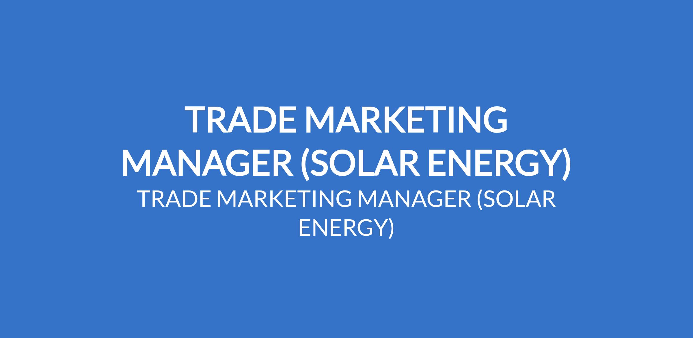 TRADE MARKETING MANAGER (SOLAR ENERGY)