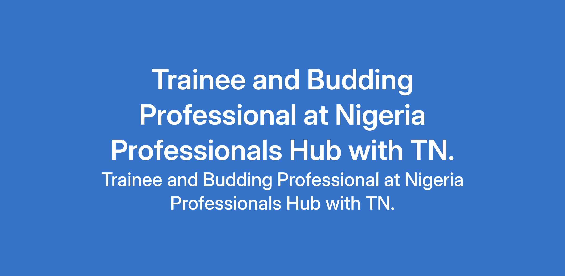 Trainee and Budding Professional at Nigeria Professionals Hub with TN.