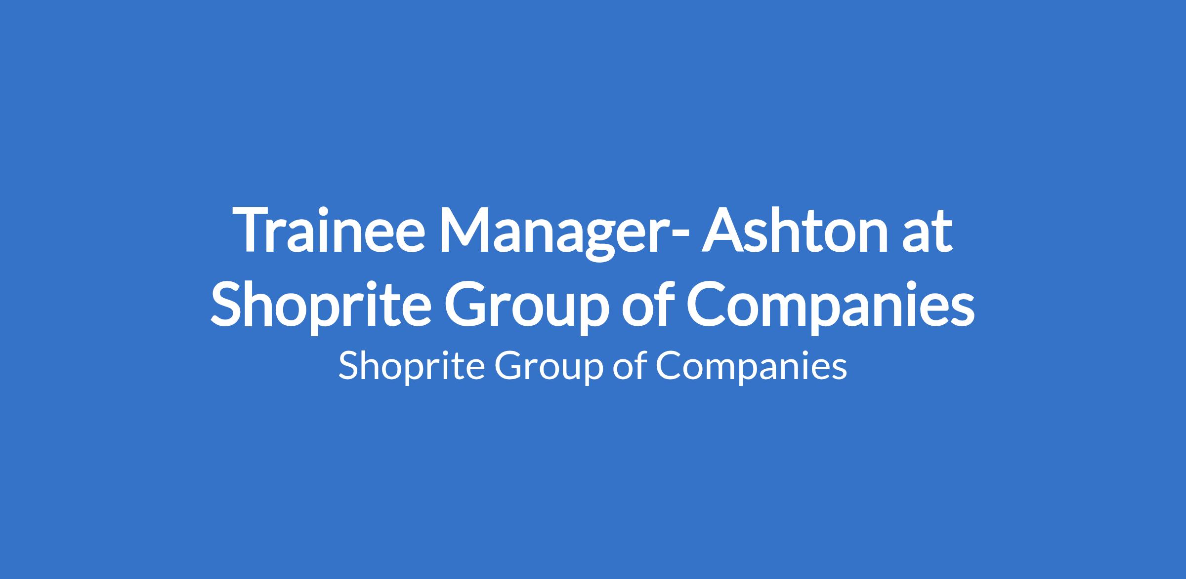 Trainee Manager- Ashton at Shoprite Group of Companies