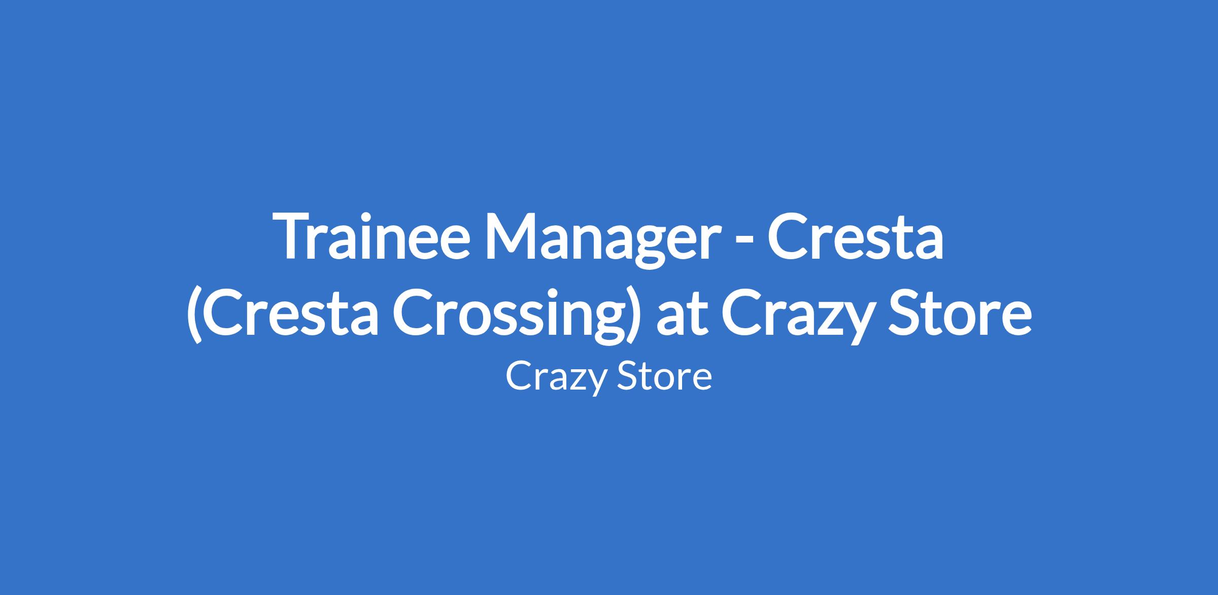 Trainee Manager - Cresta (Cresta Crossing) at Crazy Store