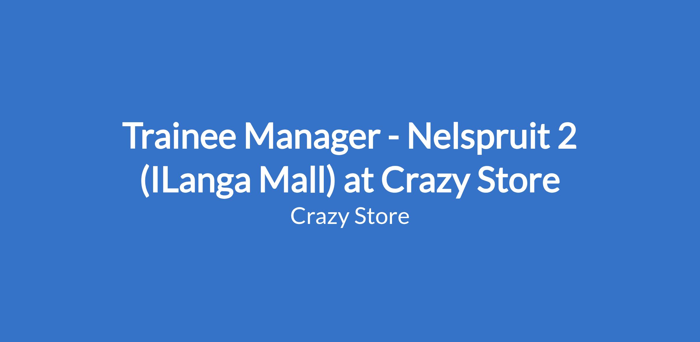 Trainee Manager - Nelspruit 2 (ILanga Mall) at Crazy Store