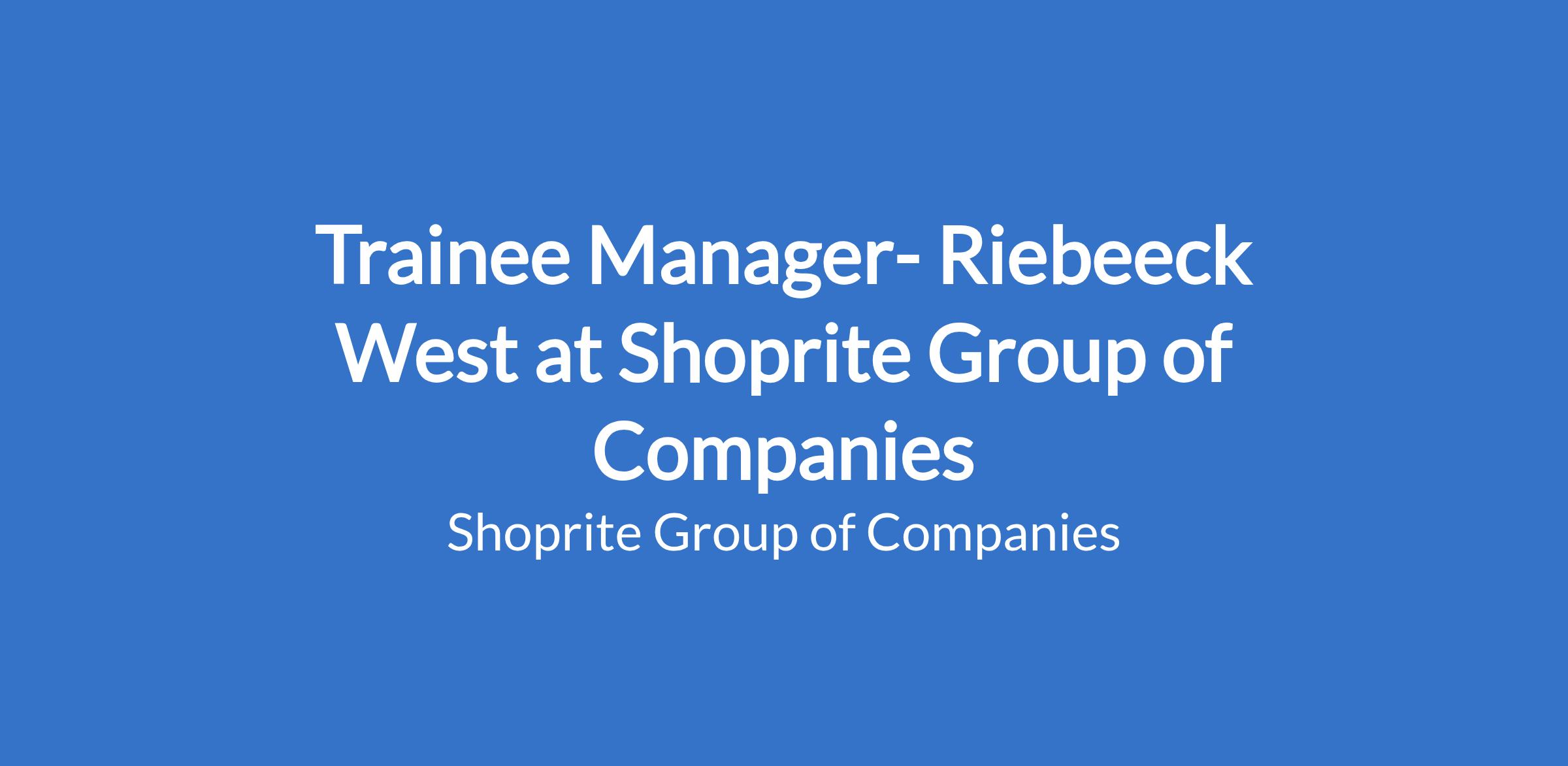 Trainee Manager- Riebeeck West at Shoprite Group of Companies