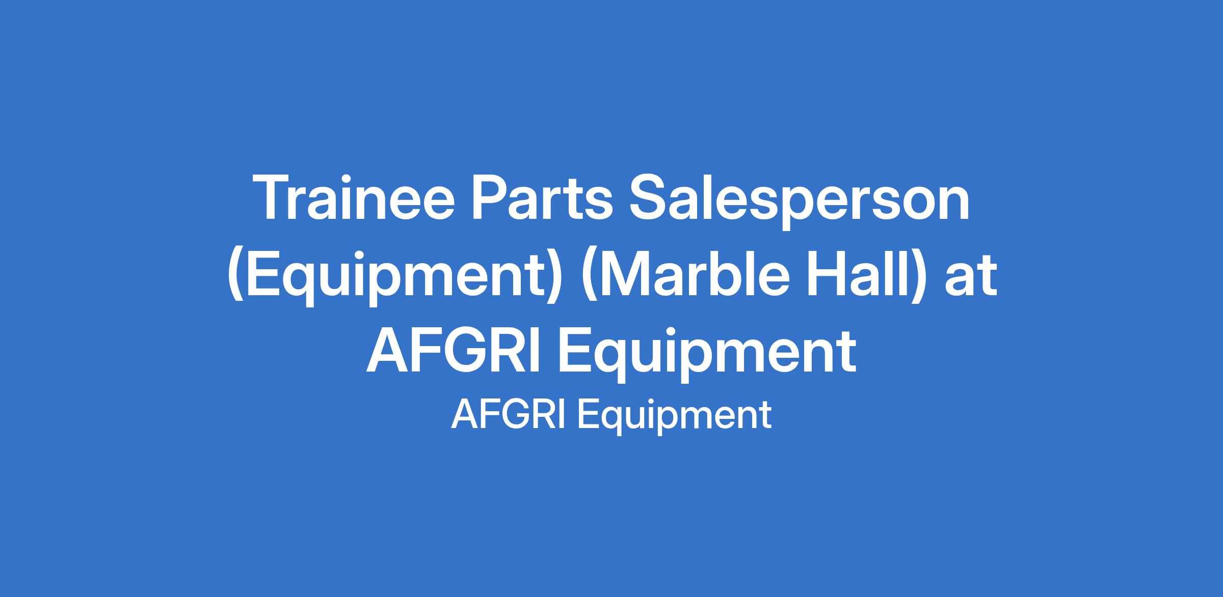 Trainee Parts Salesperson (Equipment) (Marble Hall) at AFGRI Equipment