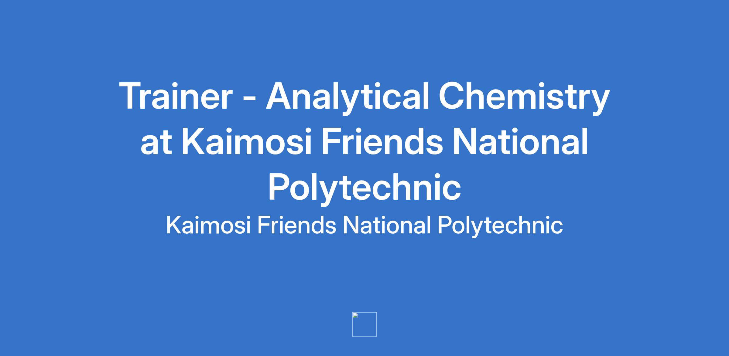 Trainer - Analytical Chemistry at Kaimosi Friends National Polytechnic