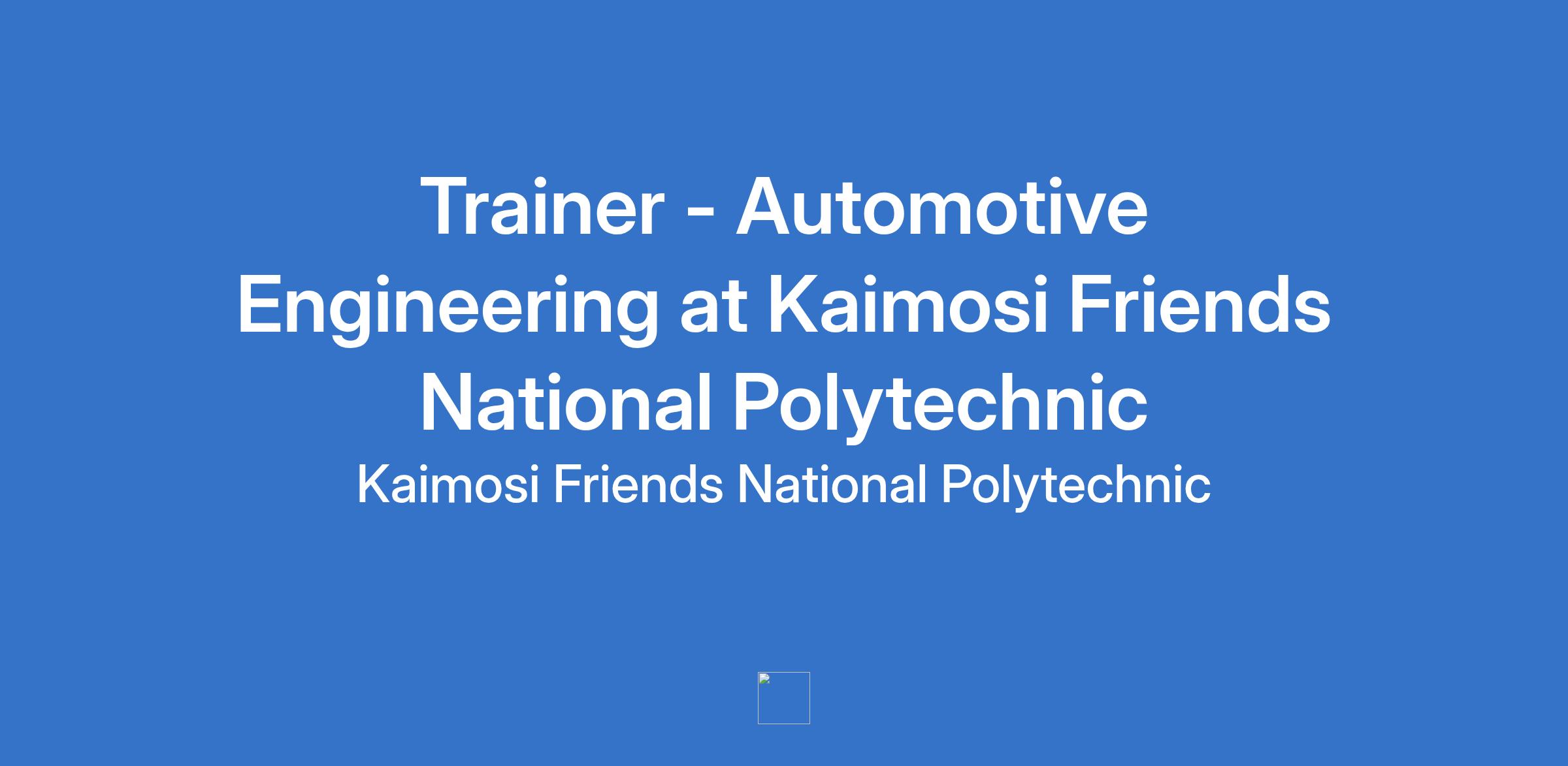 Trainer - Automotive Engineering at Kaimosi Friends National Polytechnic