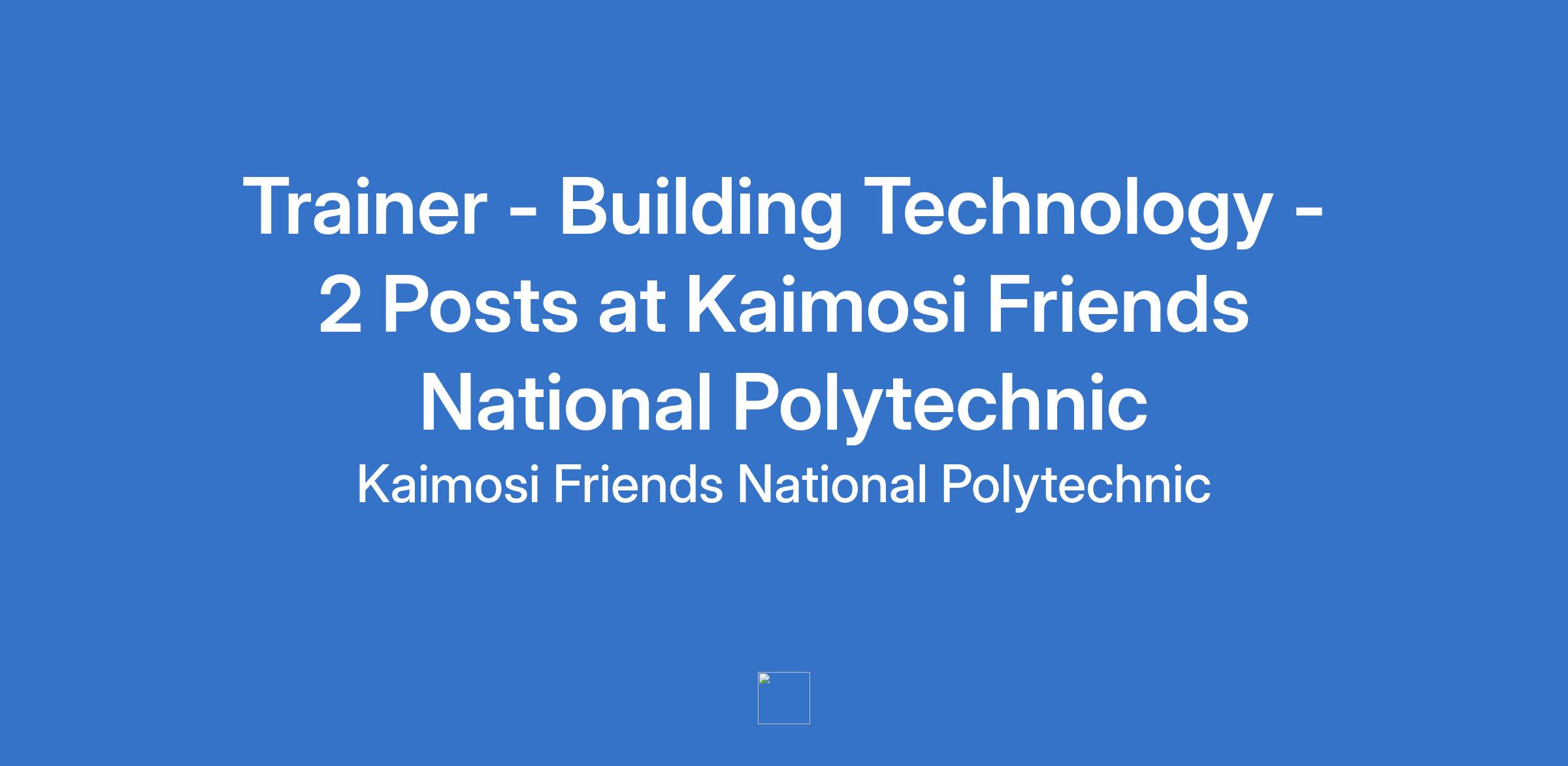 Trainer - Building Technology - 2 Posts at Kaimosi Friends National Polytechnic