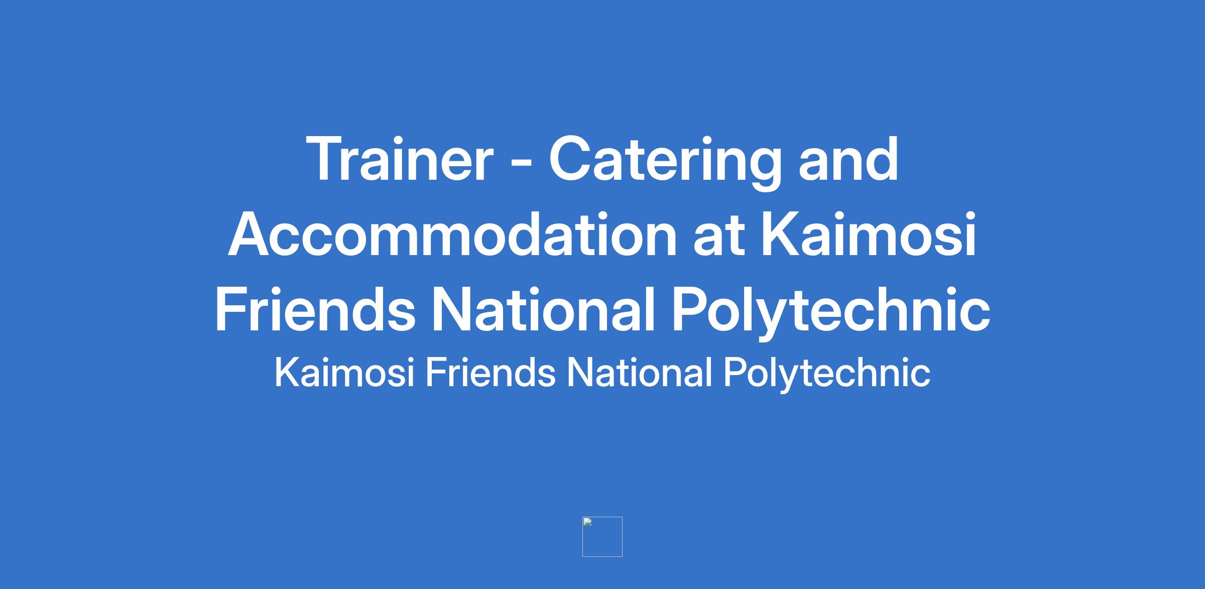 Trainer - Catering and Accommodation at Kaimosi Friends National Polytechnic