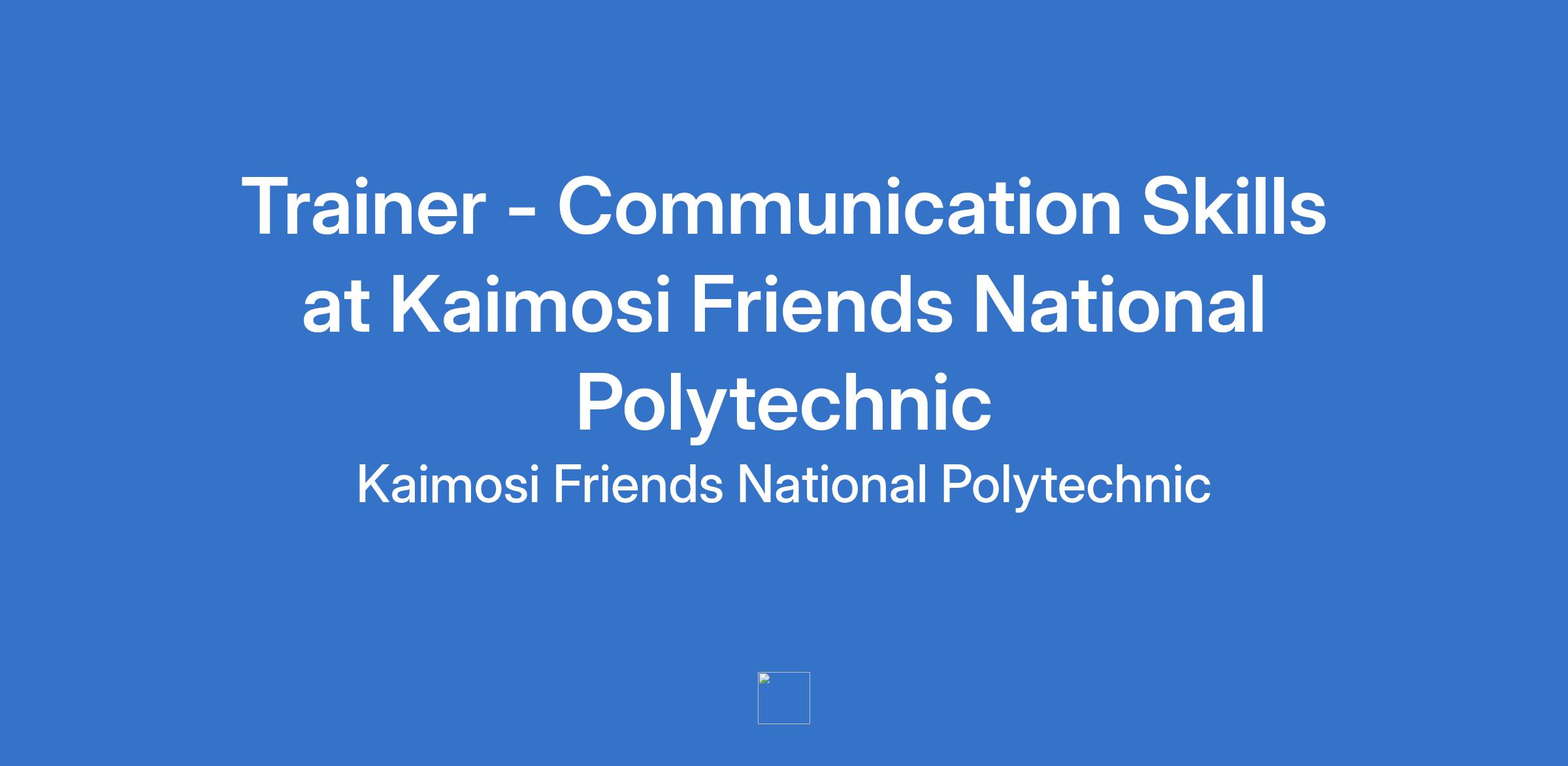 Trainer - Communication Skills at Kaimosi Friends National Polytechnic