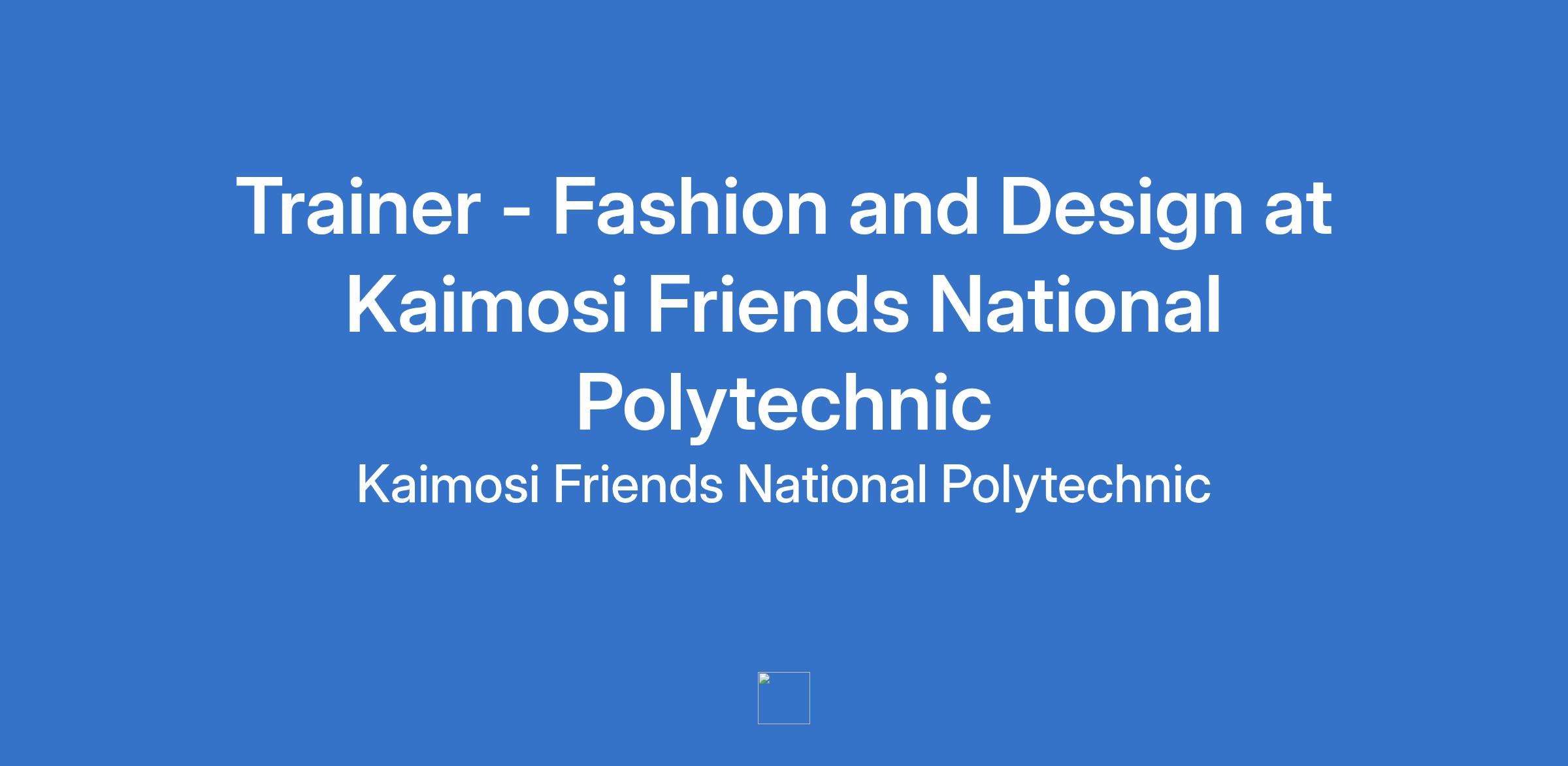 Trainer - Fashion and Design at Kaimosi Friends National Polytechnic