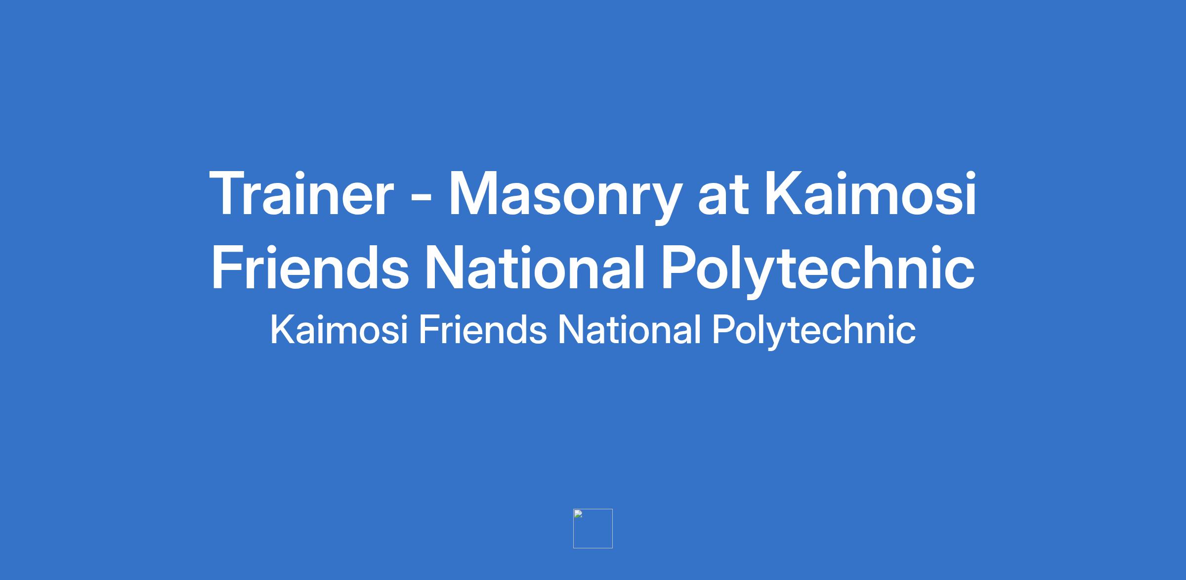 Trainer - Masonry at Kaimosi Friends National Polytechnic