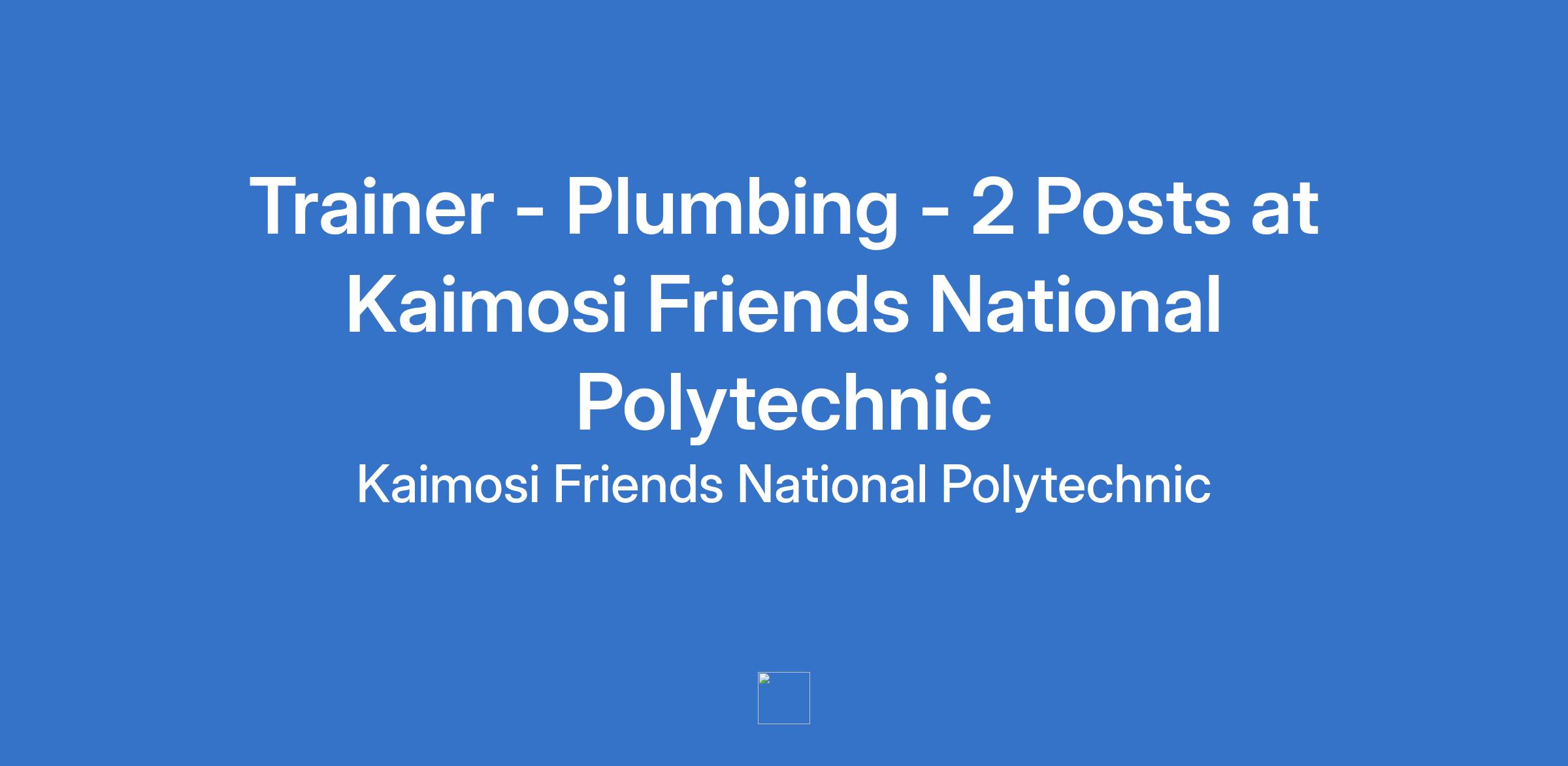 Trainer - Plumbing - 2 Posts at Kaimosi Friends National Polytechnic