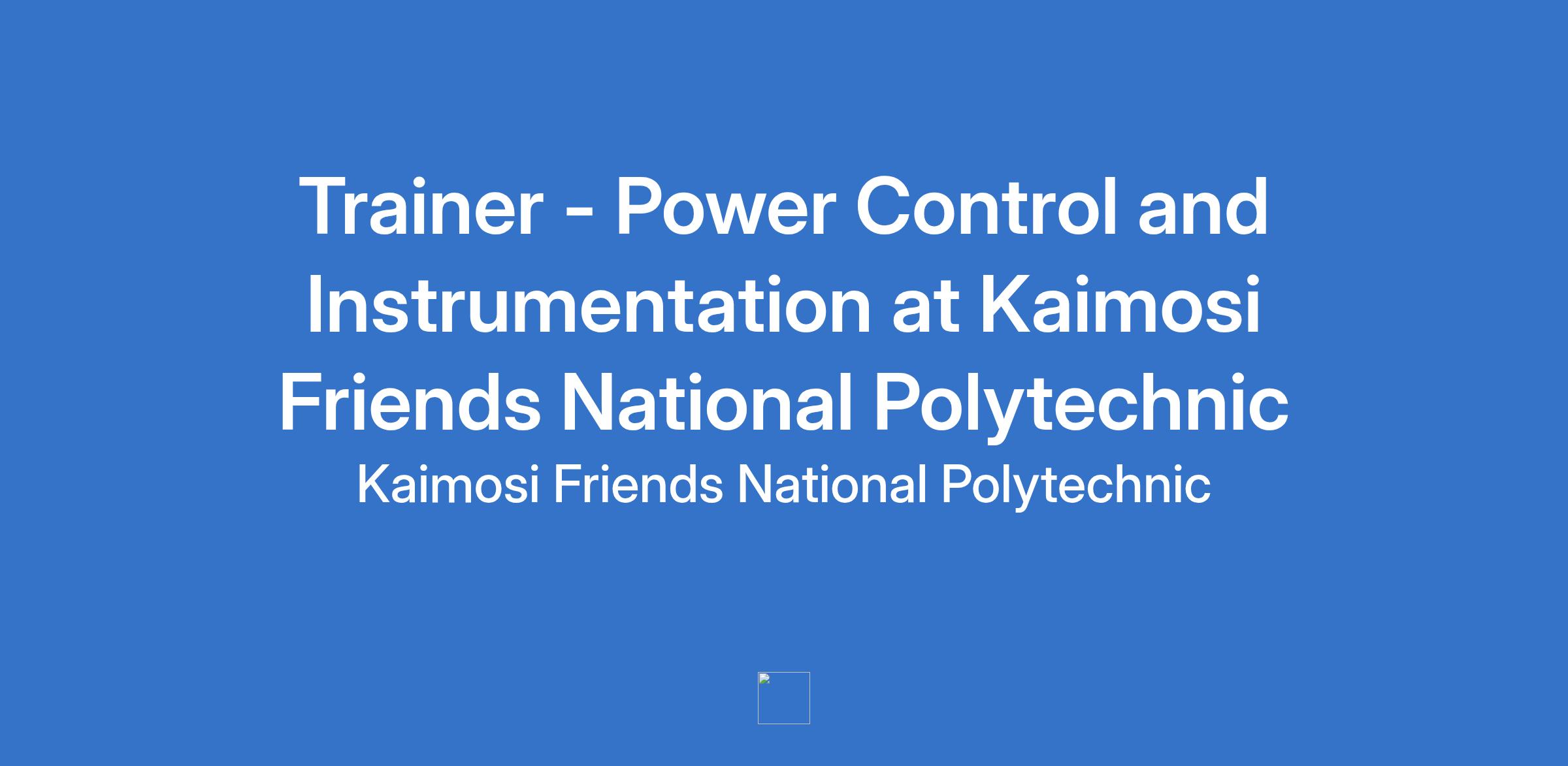 Trainer - Power Control and Instrumentation at Kaimosi Friends National Polytechnic