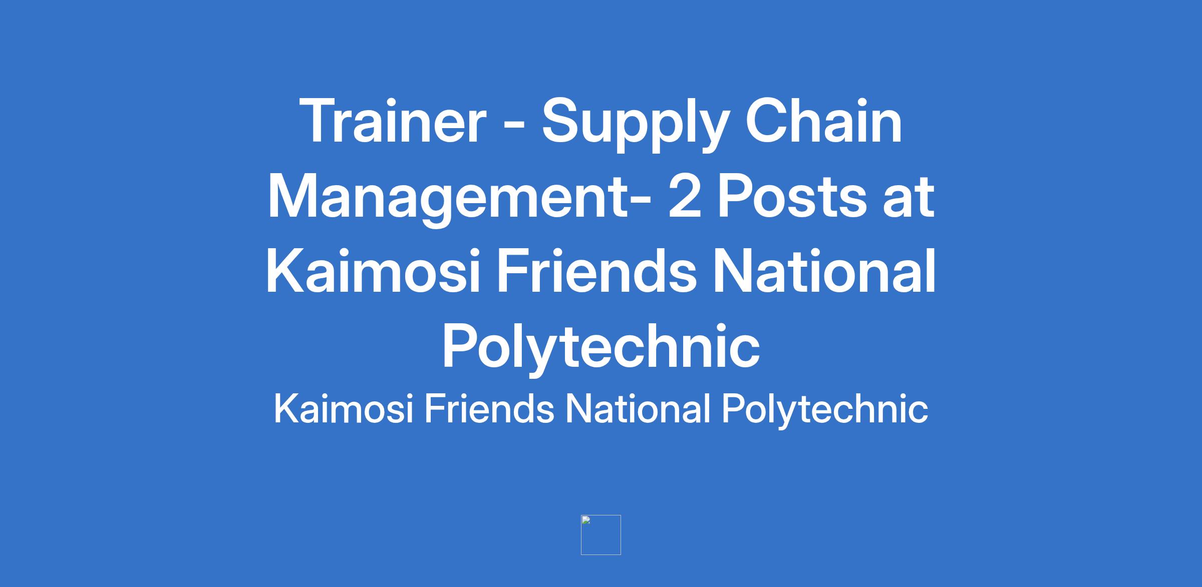 Trainer - Supply Chain Management- 2 Posts at Kaimosi Friends National Polytechnic