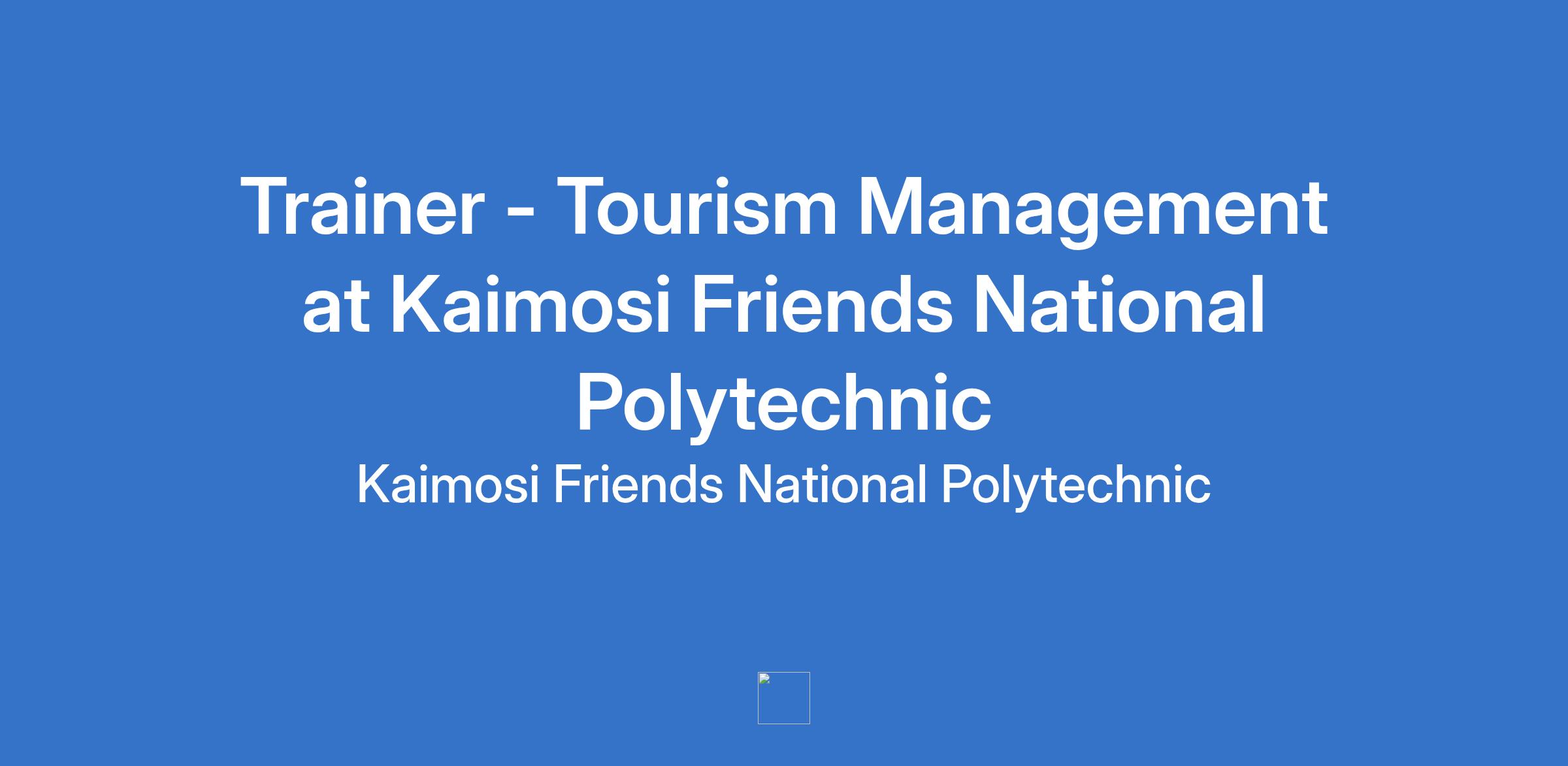 Trainer - Tourism Management at Kaimosi Friends National Polytechnic