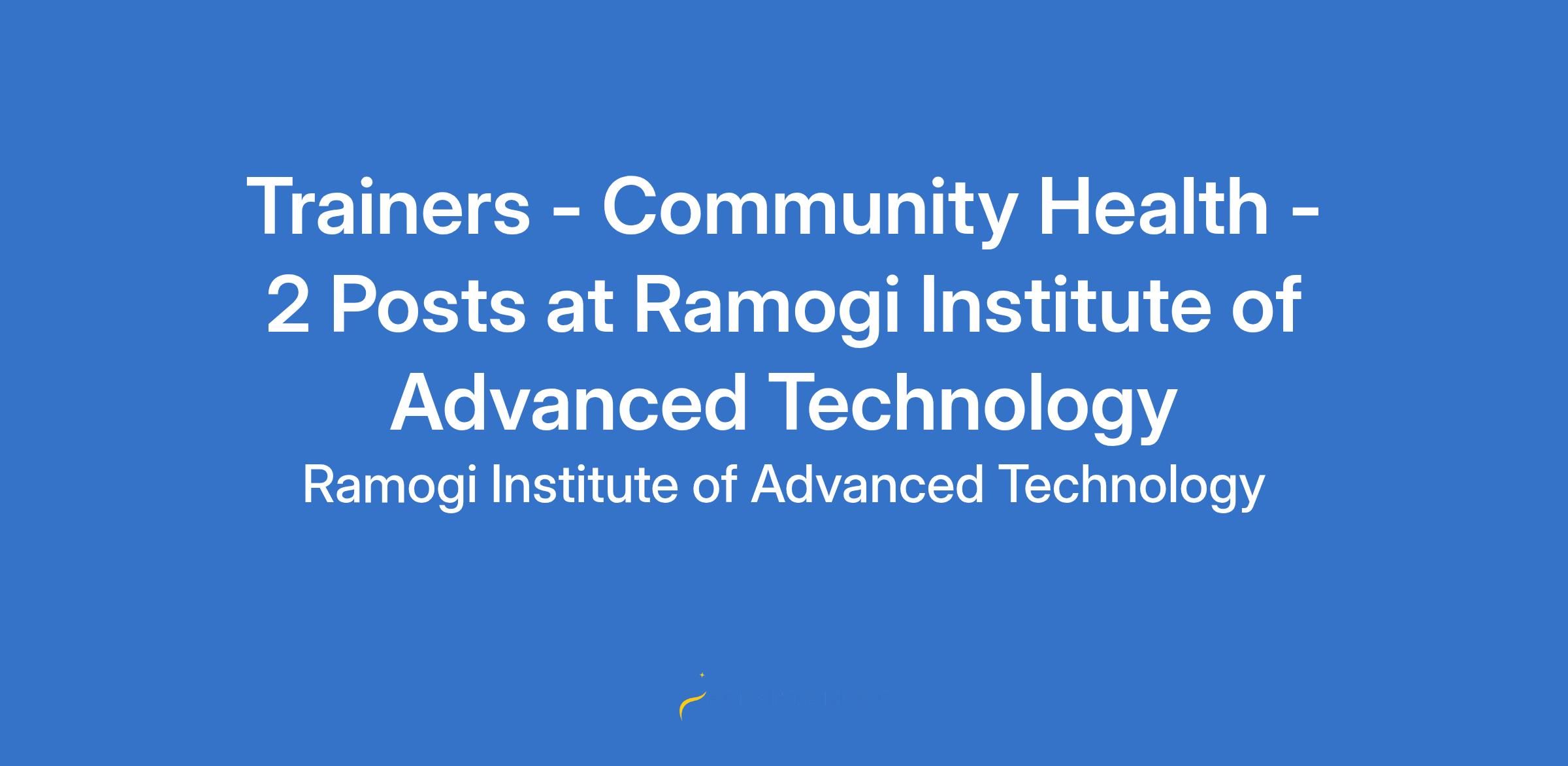 Trainers - Community Health - 2 Posts at Ramogi Institute of Advanced Technology