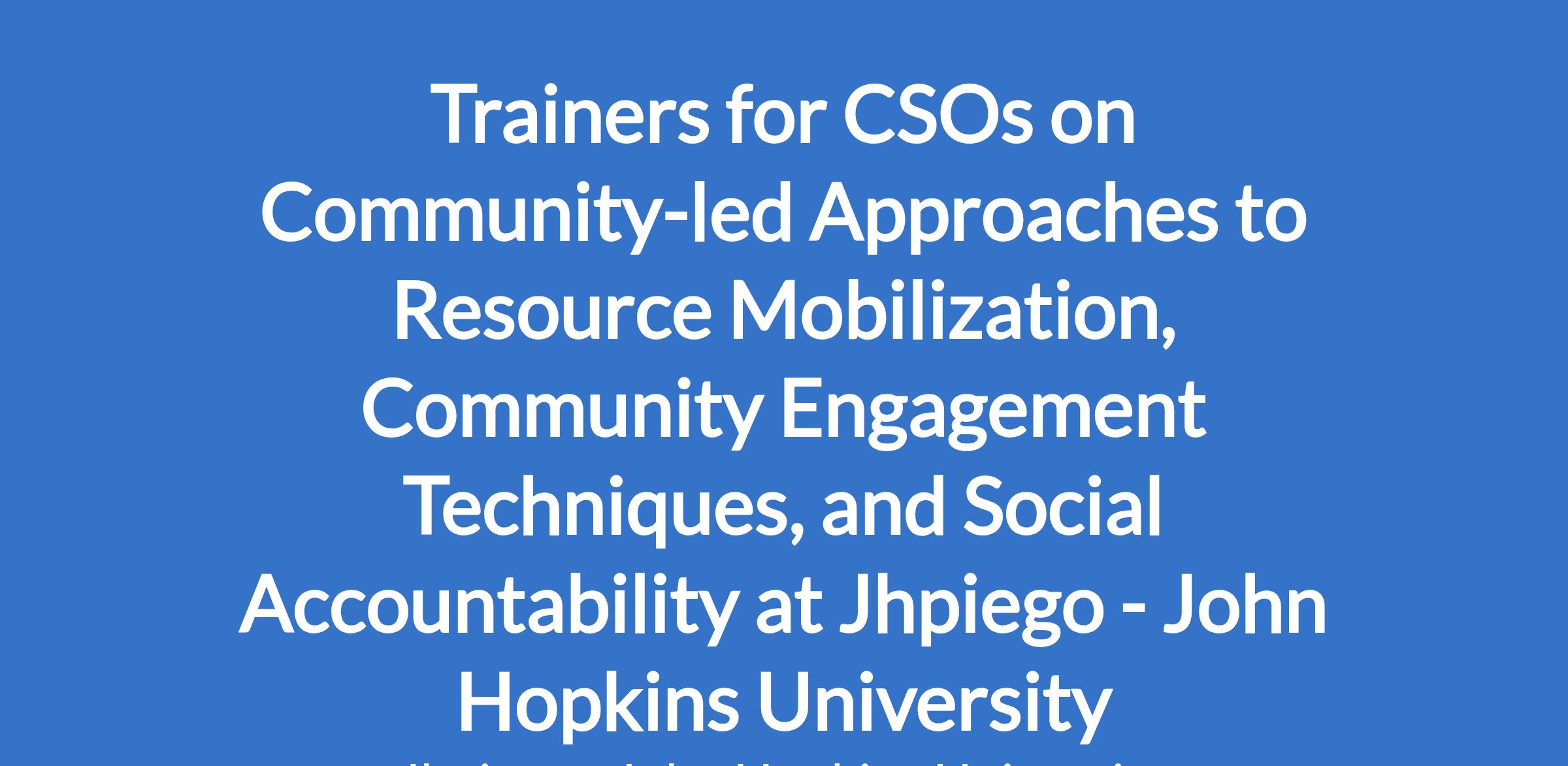 Trainers for CSOs on Community-led Approaches to Resource Mobilization, Community Engagement Techniques, and Social Accountability at Jhpiego - John Hopkins University