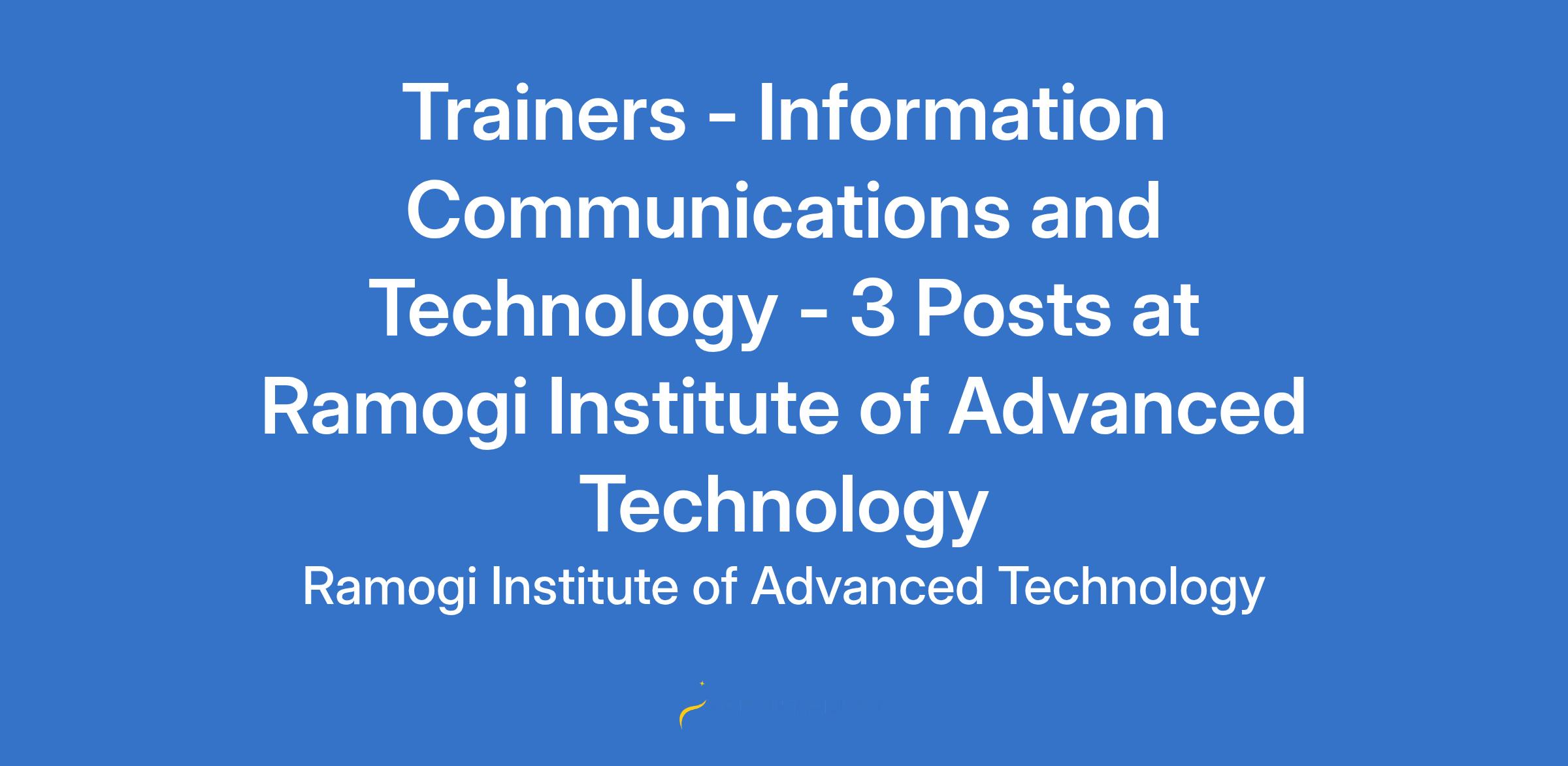 Trainers - Information Communications and Technology - 3 Posts at Ramogi Institute of Advanced Technology