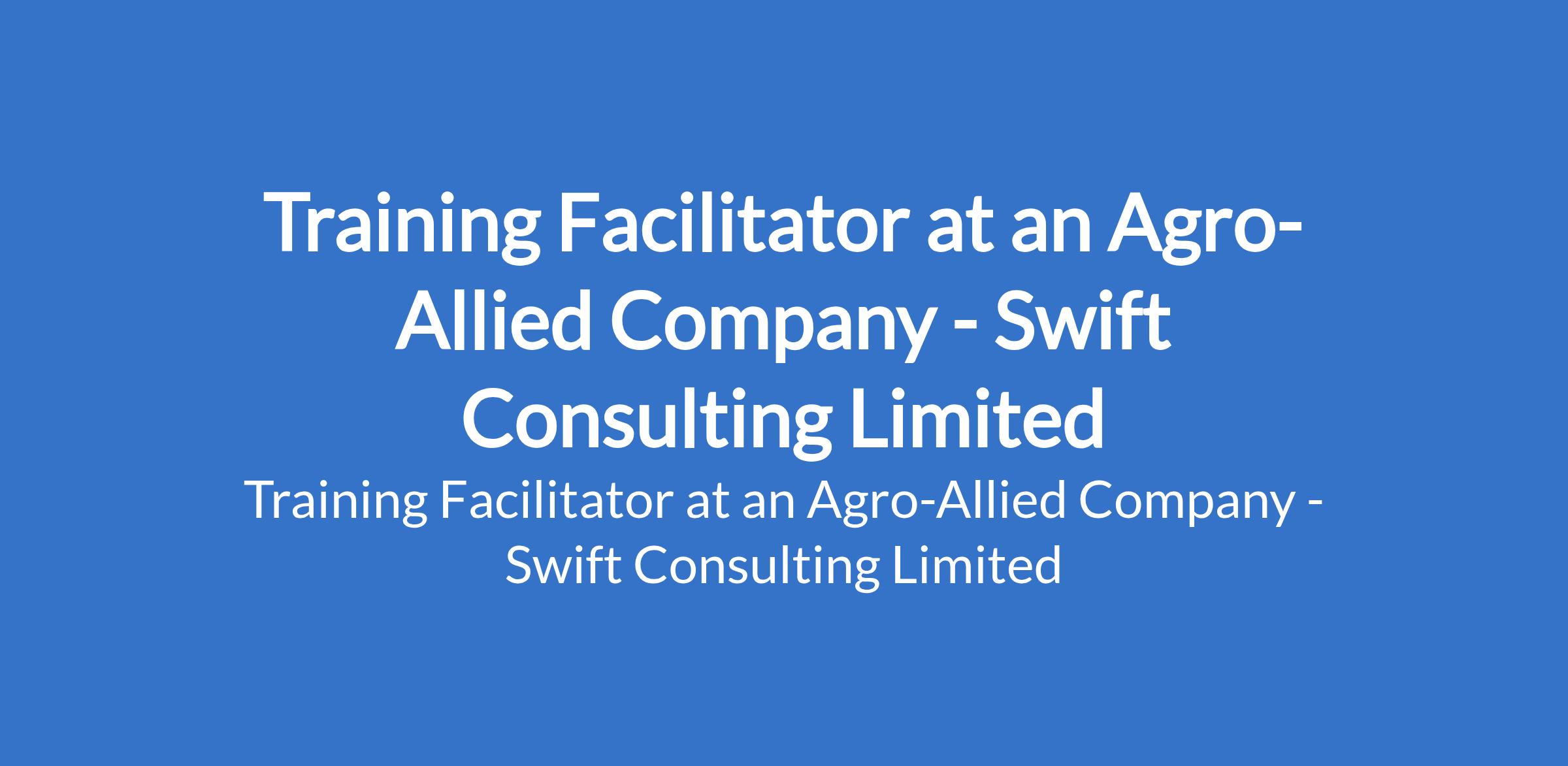 Swift Consulting Limited - Our client, an Agro-Allied company is recruiting to fill the position of: Training Facilitator. The position is located in Owerri, Imo State. Interested candidates should possess relevant qualification with a strong background or hands-on experience in poultry farming or animal production.