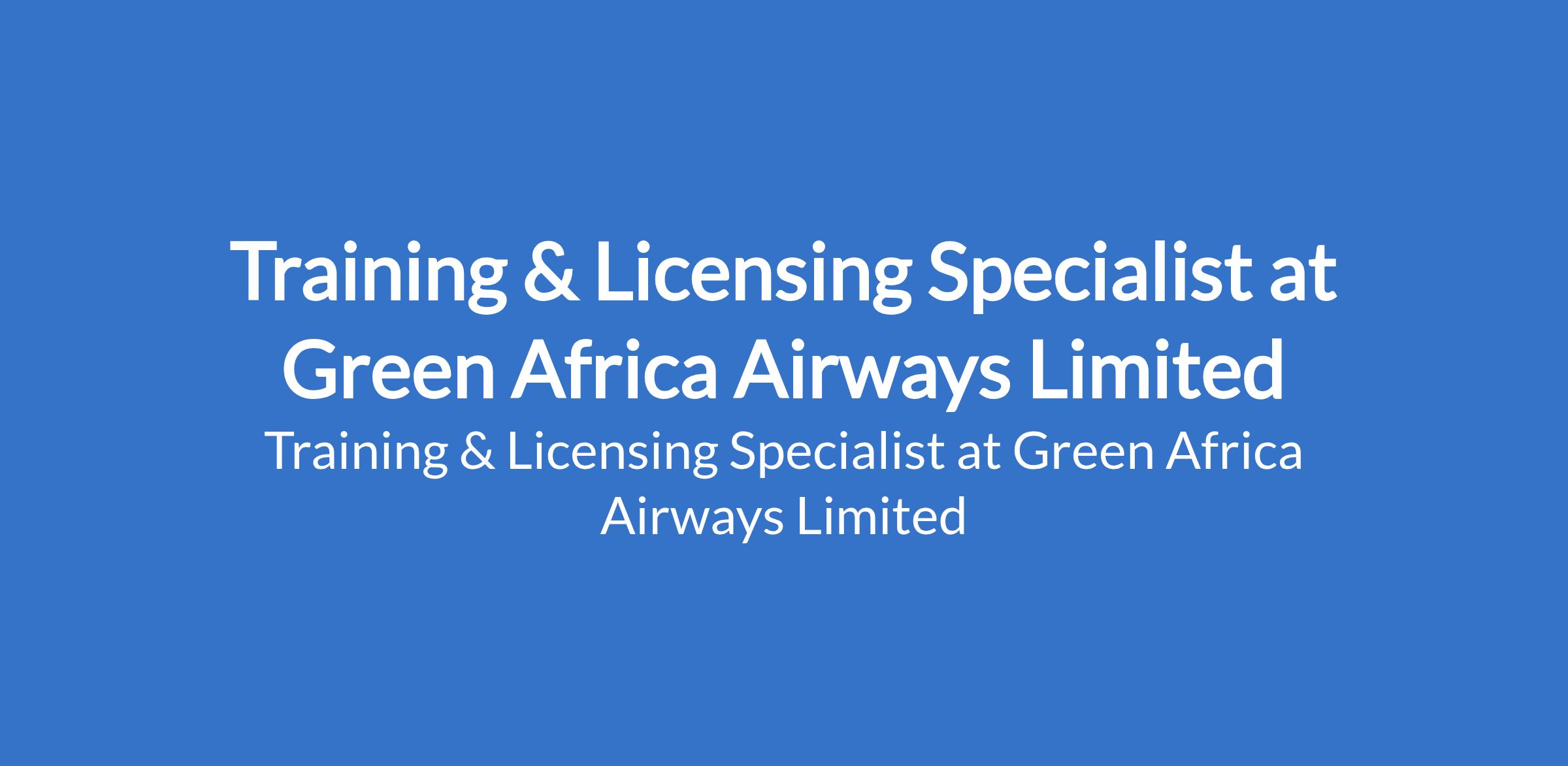 Green Africa Airways Limited is recruiting to fill the position of: Training & Licensing Specialist. The position is located in Lagos State. Interested candidates should possess an HND / B.Sc Degree from a reputable institution with 2 years' experience in similar role.