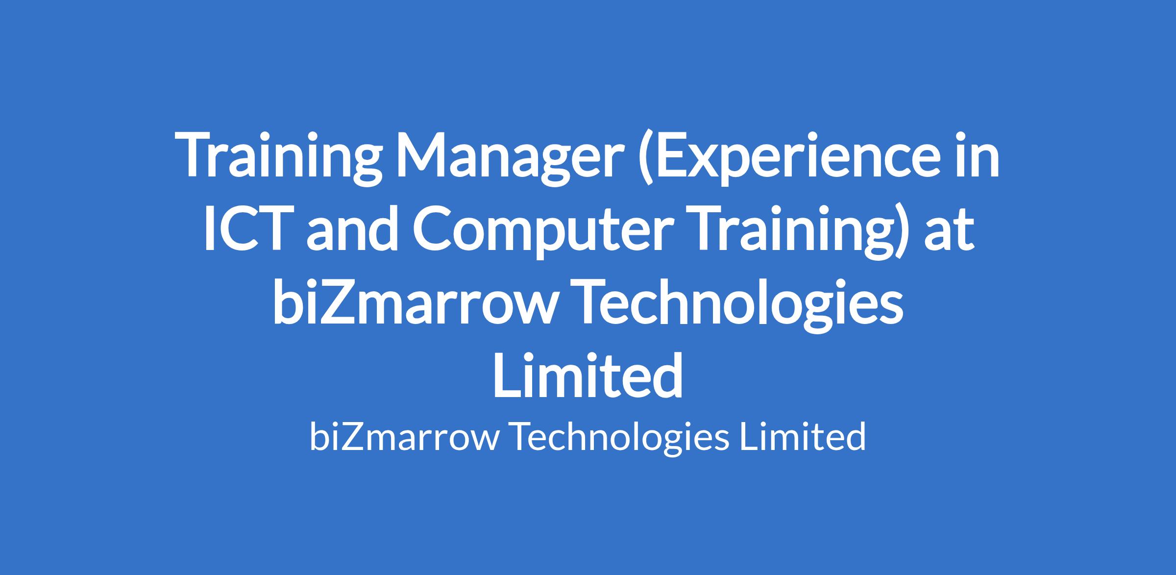 Training Manager (Experience in ICT and Computer Training) at biZmarrow Technologies Limited