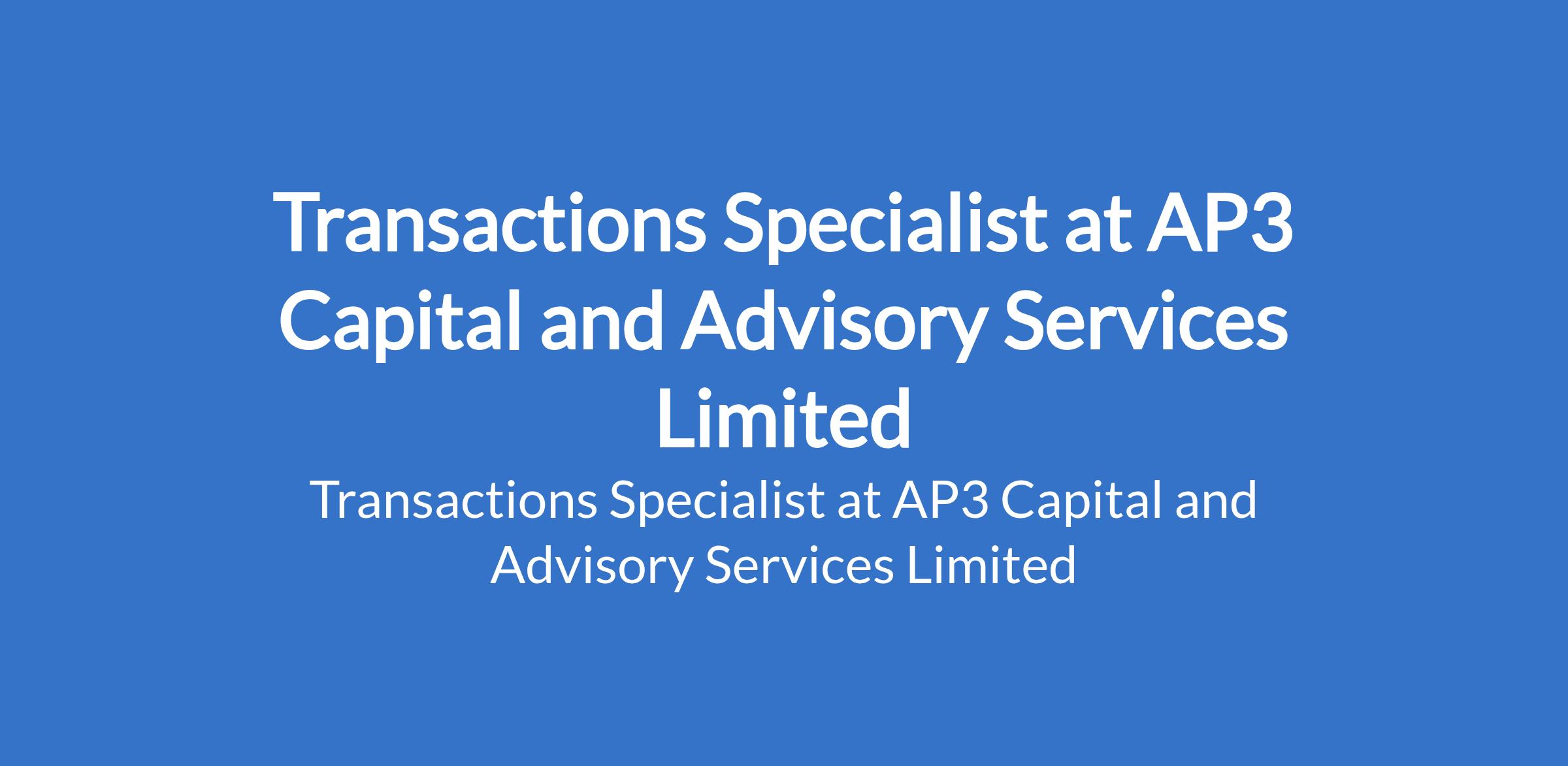AP3 Capital and Advisory Services Limited is recruiting to fill the position of: Transactions Specialist. The position is located in Abuja (FCT). Salary: N250,000 - N300,000 per month. Interested candidates should possess a Bachelors Degree with 5-7 years of experience in infrastructure project management, capital & infrastructure projects advisory.