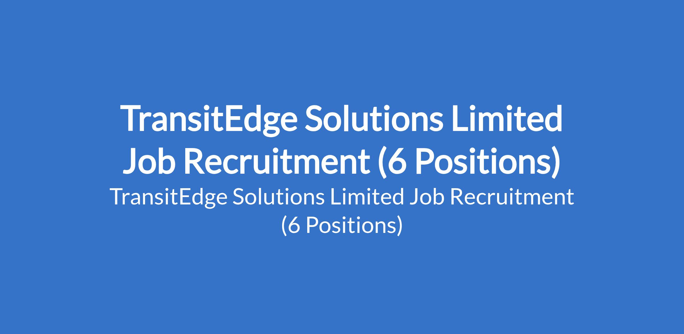TransitEdge Solutions Limited Job Recruitment (6 Positions)