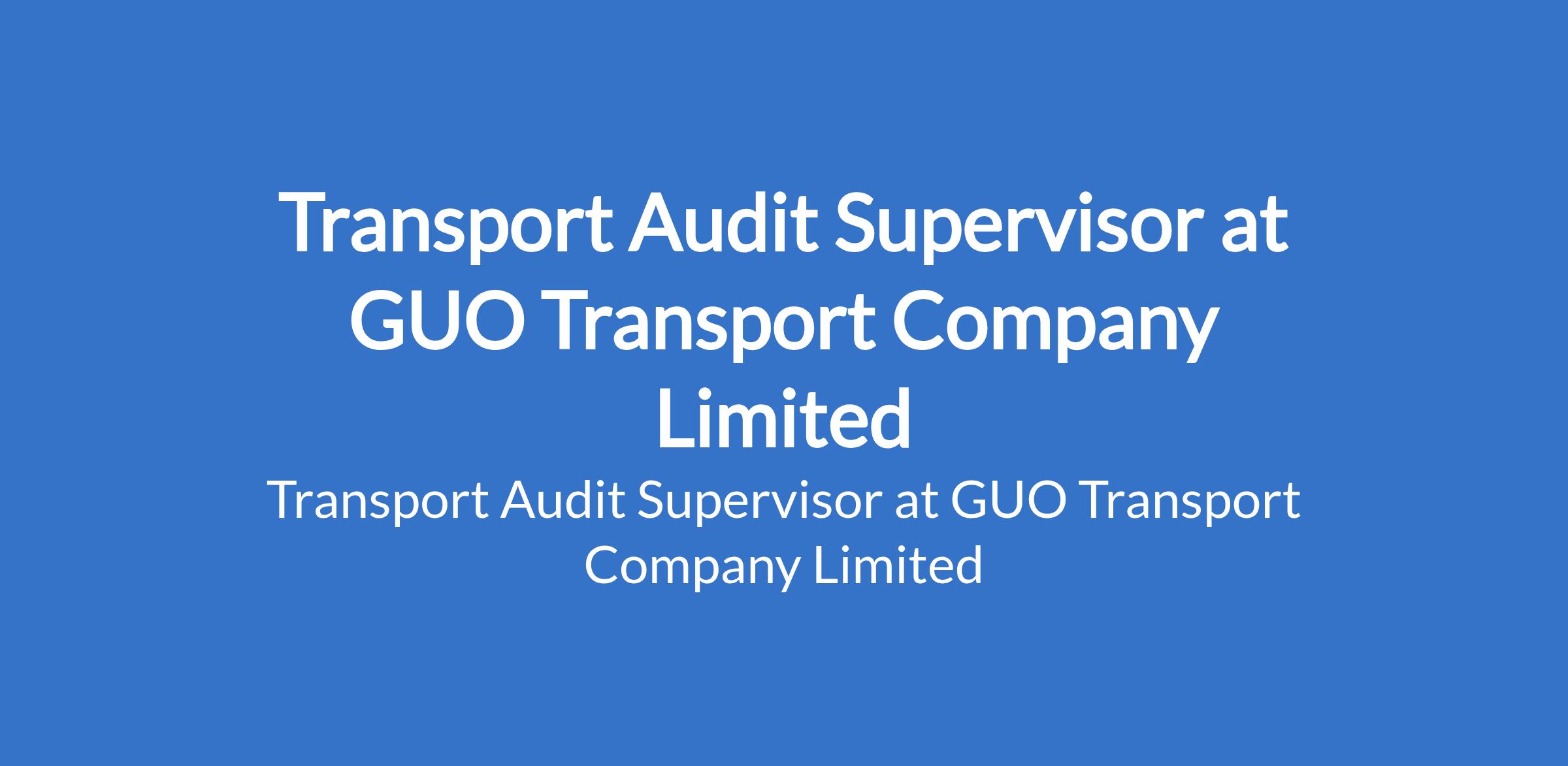GUO Transport Company Limited is recruiting to fill the position of: Transport Audit Supervisor. The position is located in Orile Coker, Lagos State. Interested candidates should possess a Bachelors Degree in Accounting, Finance, or a related field with 2 5 years relevant experience in audit, accounting, or financial control.