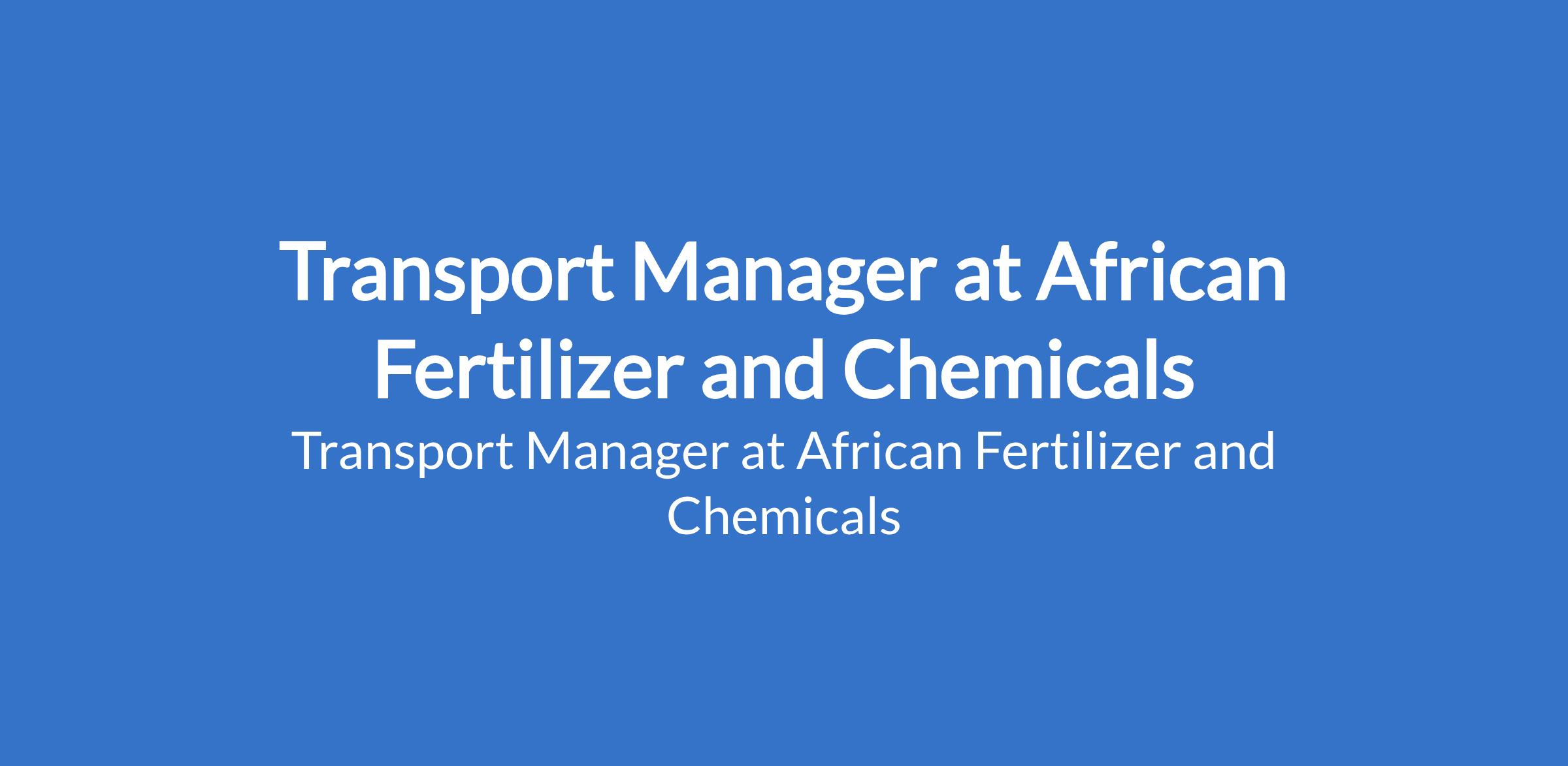 African Fertilizer and Chemicals is recruiting to fill the position of: Transport Manager. The position is located in Agbara, Ogun State. Interested candidates should possess an HND or BSc in Logistics, Transport Management, Business Administration, or a related field with 5 years of proven experience in a similar role, preferably within a manufacturing or logistics environment. Residency in or around Agbara is mandatory due to the operational demands of the role.