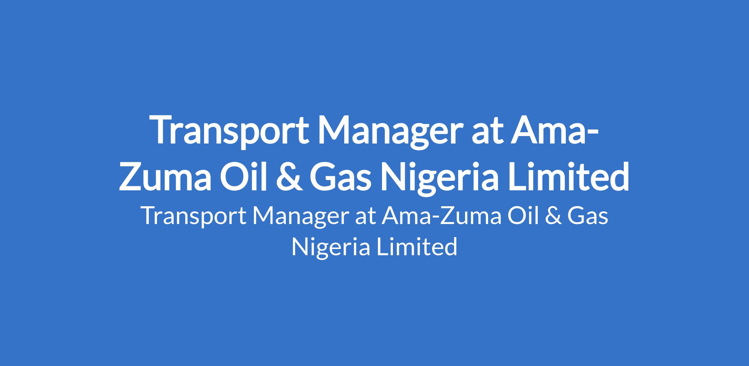 Ama-Zuma Oil & Gas Nigeria Limited is recruiting to fill the position of: Transport Manager. The position is located in Abule-Egba, Lagos State. Interested candidates should possess a B.Sc / HND in Supply Chain, Logistics,Transpotation or any related Course with 10 - 15 years of proven experience as Transportation Manager,or similar role.