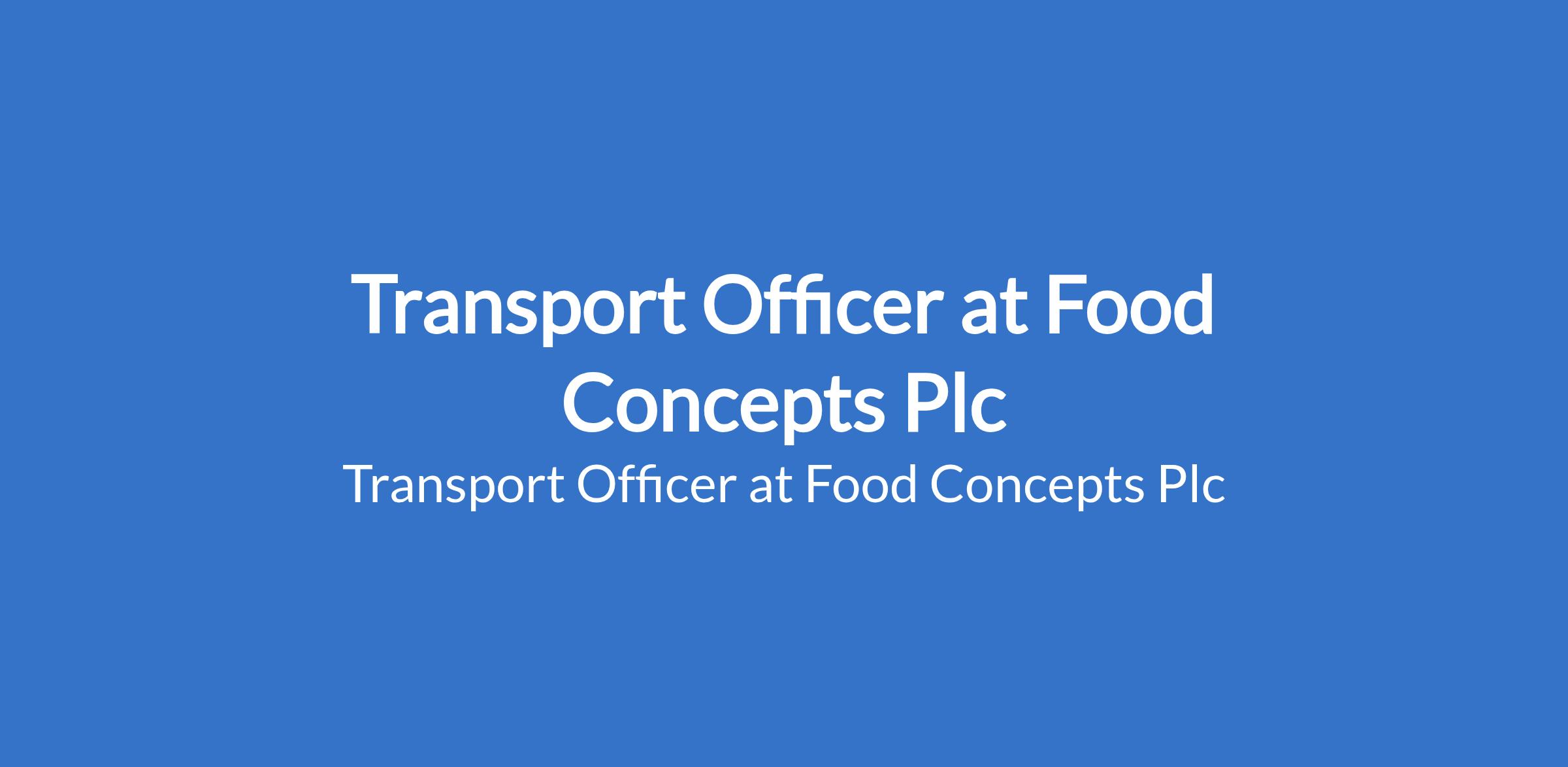 Food Concepts Plc is recruiting to fill the position of: Transport Officer. The position is located in Lagos State. Interested candidates should possess a minimum of Bachelors Degree or HND in Business Administration or any related discipline with a minimum of 2 years experience in a similar role.