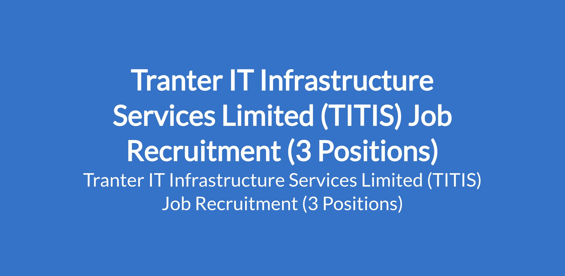 Tranter IT Infrastructure Services Limited (TITIS) Job Recruitment (3 Positions)
