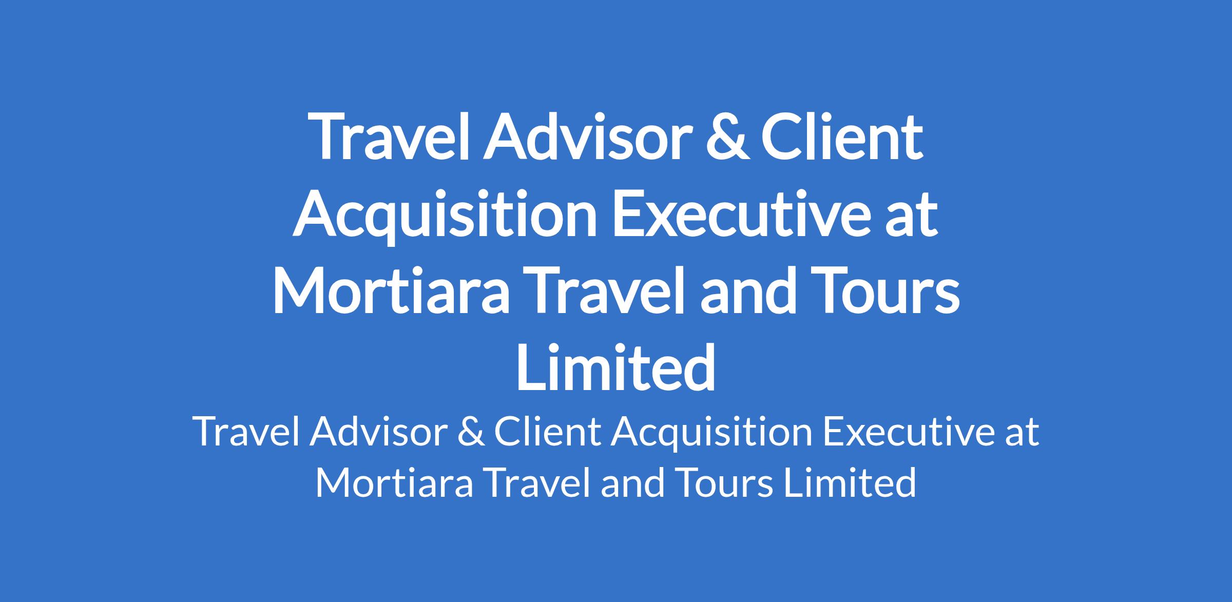 Mortiara Travel and Tours Limited is recruiting to fill the position of: Travel Advisor & Client Acquisition Executive. The position is located in Redemption Camp, Lagos-Ibadan Expressway - Ogun State. Interested candidates should possess a Bachelor's Degree with 2 years experience and must be residing between Ojodu-berger and Redemption Camp, Lagos-Ibadan Expressway.