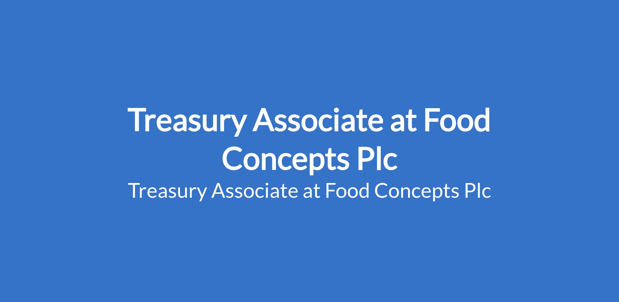 Food Concepts Plc is recruiting to fill the position of: Treasury Associate. The position is located in Lagos State. Interested candidates should possess a minimum of a First Degree in Accounting or Finance with a minimum of 3 years in a core financial/treasury capacity.