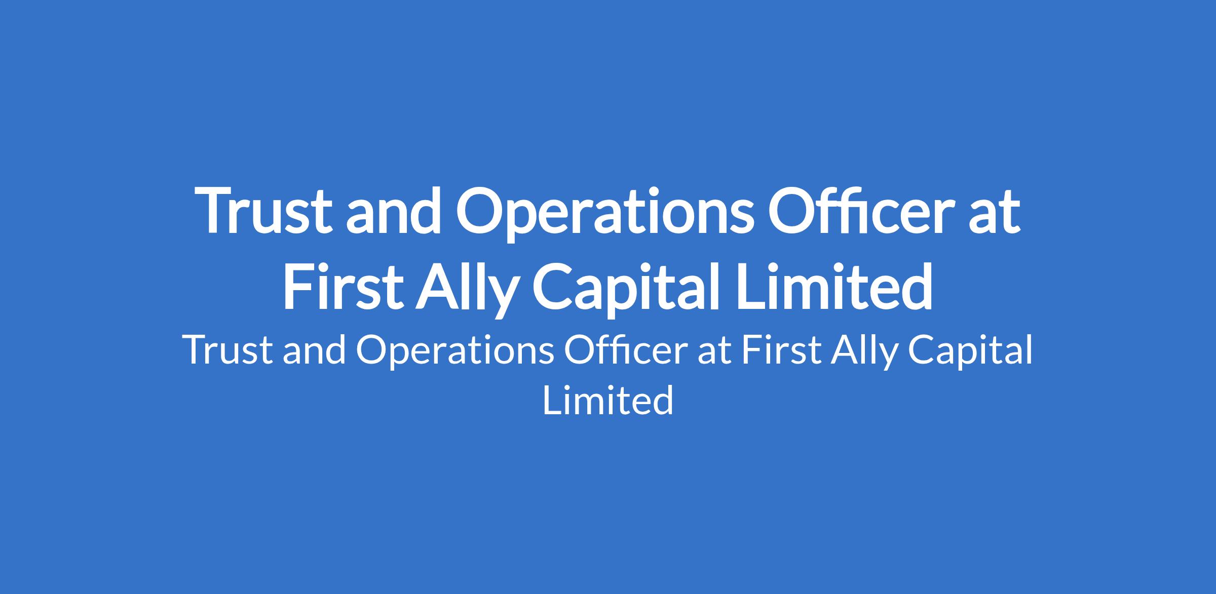 First Ally Capital Limited is recruiting to fill the position of: Trust and Operations Officer. The position is located in Lagos State. Interested candidates should possess a Bachelors Degree in Accounting, Banking & Finance, Economics, Business Administration, or a related discipline.