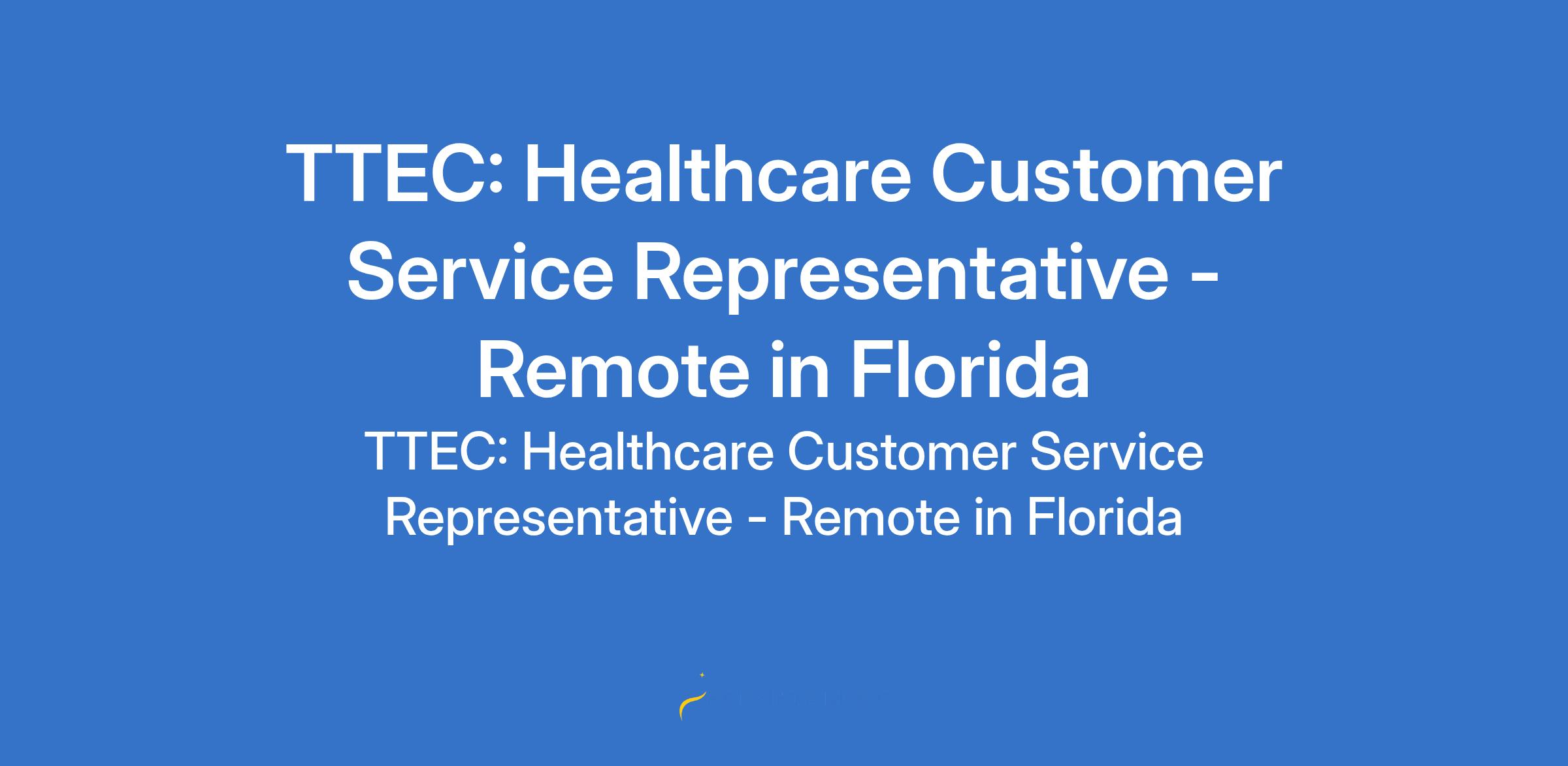 Your potential has a place here with TTEC's award-winning employment experience. As a Healthcare Customer Service Representative, working remotely in Florida, you'll be a part of bringing humanity to business Our employees have spoken. Our purpose, team, and company culture are amazing and our Great Place to Work certification in the United States says it all! What You'll be Doing Do you have a passion for helping others? Whether it's getting answers for customers quickly, consulting on products with compassion or finding resolutions for their issues with a smile, you'll be the difference between their customer experience being just average or an exceptional one. During a Typical Day, You'll Answer incoming communications from customers Conduct research to provide answers for customers to resolve their issues What You Bring to the Role 6 months or more of customer services experience Integrity to follow HIPAA guidelines on maintaining patient privacy (just as you would expect if it were your private information being shared) High school diploma or equivalent Computer experience High speed internet (> 15 mbps) While we recommend a USB wired headset, if you have a headset already, you may be able to use that (except for Bluetooth headsets) Smart phone or another device that runs IOS or Android (iPad etc.) for your daily log-in What You Can Expect Supportive of your career and professional development An inclusive culture and community minded organization where giving back is encouraged A global team of curious lifelong learners guided by our company values Base wage starting at $16 per hour plus performance bonus opportunities And we have a healthy benefits package based on your position that could include PTO, tuition reimbursement, health and wellness incentives Visit for more information. A Bit More About Your Role We're committed to ensuring you have the skills and support to be successful in your role throughout your career. From your first day in training, through individualized webcam-enabled, engagement and coaching, on into 1000s of free courses to support your career growth wherever that may take you. And we know that you bring with you the one necessary ingredient that can't be taught - a caring and supportive nature that will shine through as you help customers. Our TTEC community is here for you as one dynamic, global family. You'll report to a Team lead. You'll contribute to the success of the customer experience and the overall success of the team. About TTEC Our business is about making customers happy. That's all we do. Since 1982, we've helped companies build engaged, pleased, profitable customer experiences powered by our combination of humanity and technology. On behalf of many of the world's leading iconic and hypergrowth brands, we talk, message, text, and video chat with millions of customers every day. These exceptional customer experiences start with you. TTEC is proud to be an equal opportunity employer where all qualified applicants will receive consideration for employment without regard to race, color, religion, sex, sexual orientation, gender identity, national origin, disability, or status as a protected veteran. TTEC embraces and is committed to building a diverse and inclusive workforce that respects and empowers the cultures and perspectives within our global teams. We aim to reflect the communities we serve, by not only delivering amazing service and technology, but also humanity. We make it a point to make sure all our employees feel valued, belonging, and comfortable being their authentic selves at work. As a global company, we know diversity is our strength because it enables us to view things from different vantage points and for you to bring value to the table in your own unique way.