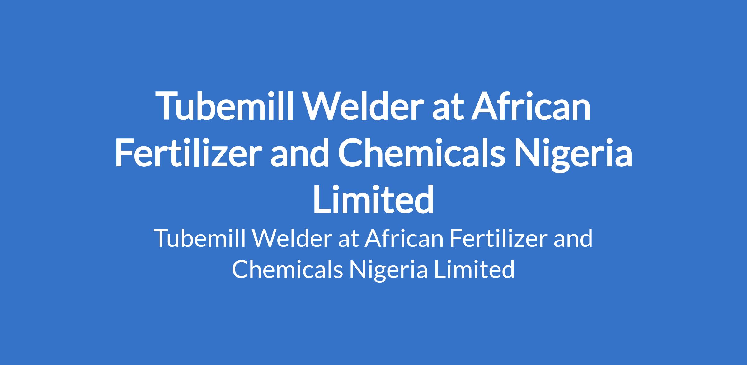 African Fertilizer and Chemicals Nigeria Limited is recruiting to fill the position of: Tubemill Welder. The position is located in Agbara, Ogun State. Interested candidates should possess an HND, OND, Trade Test, SSCE or equivalent.