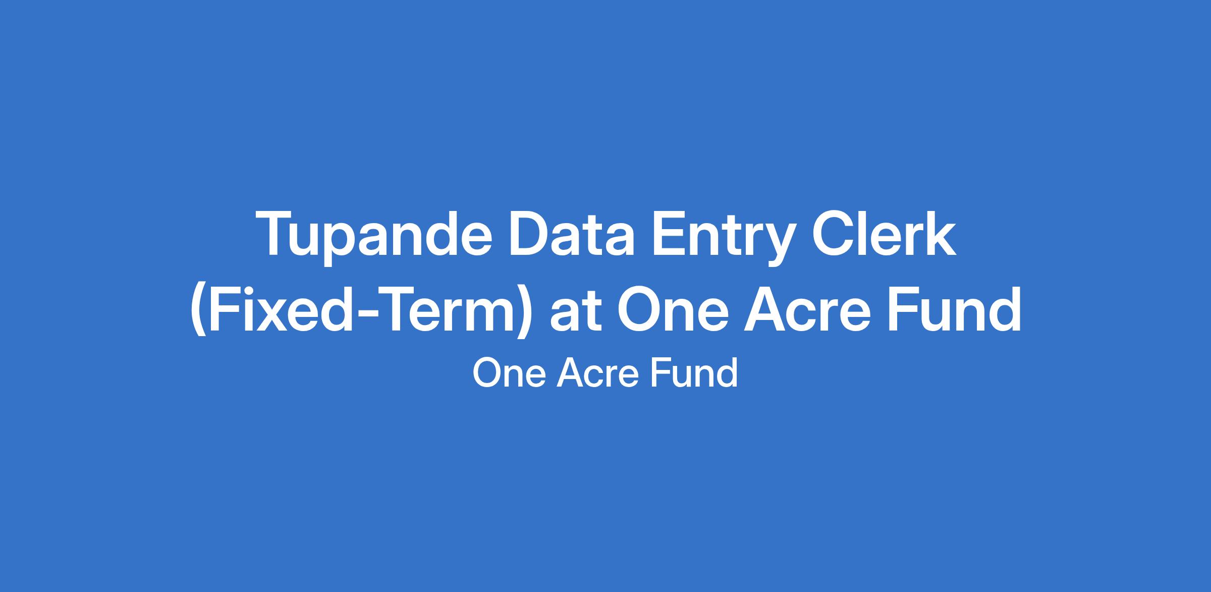 Tupande Data Entry Clerk (Fixed-Term) at One Acre Fund