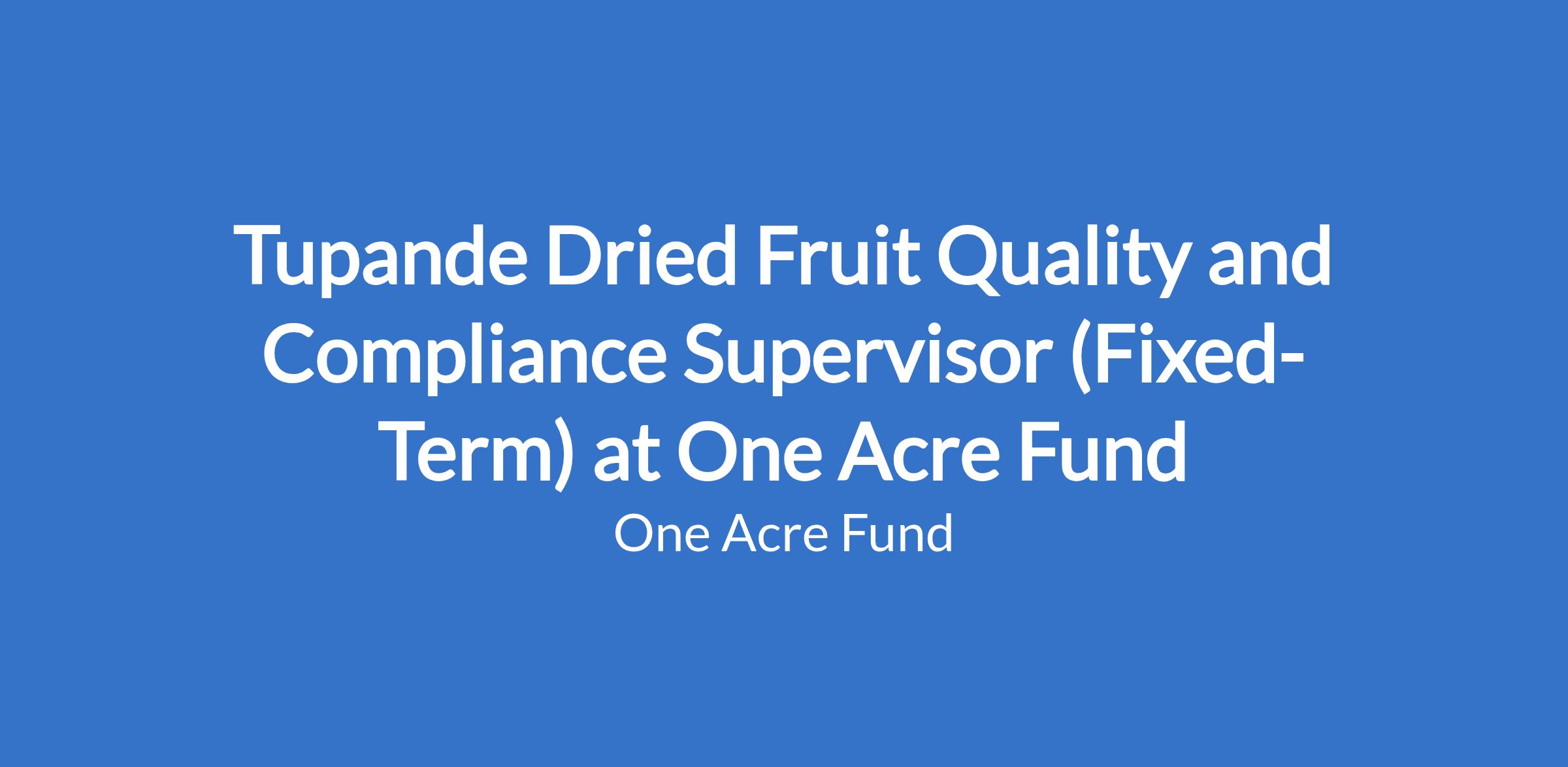Tupande Dried Fruit Quality and Compliance Supervisor (Fixed-Term) at One Acre Fund