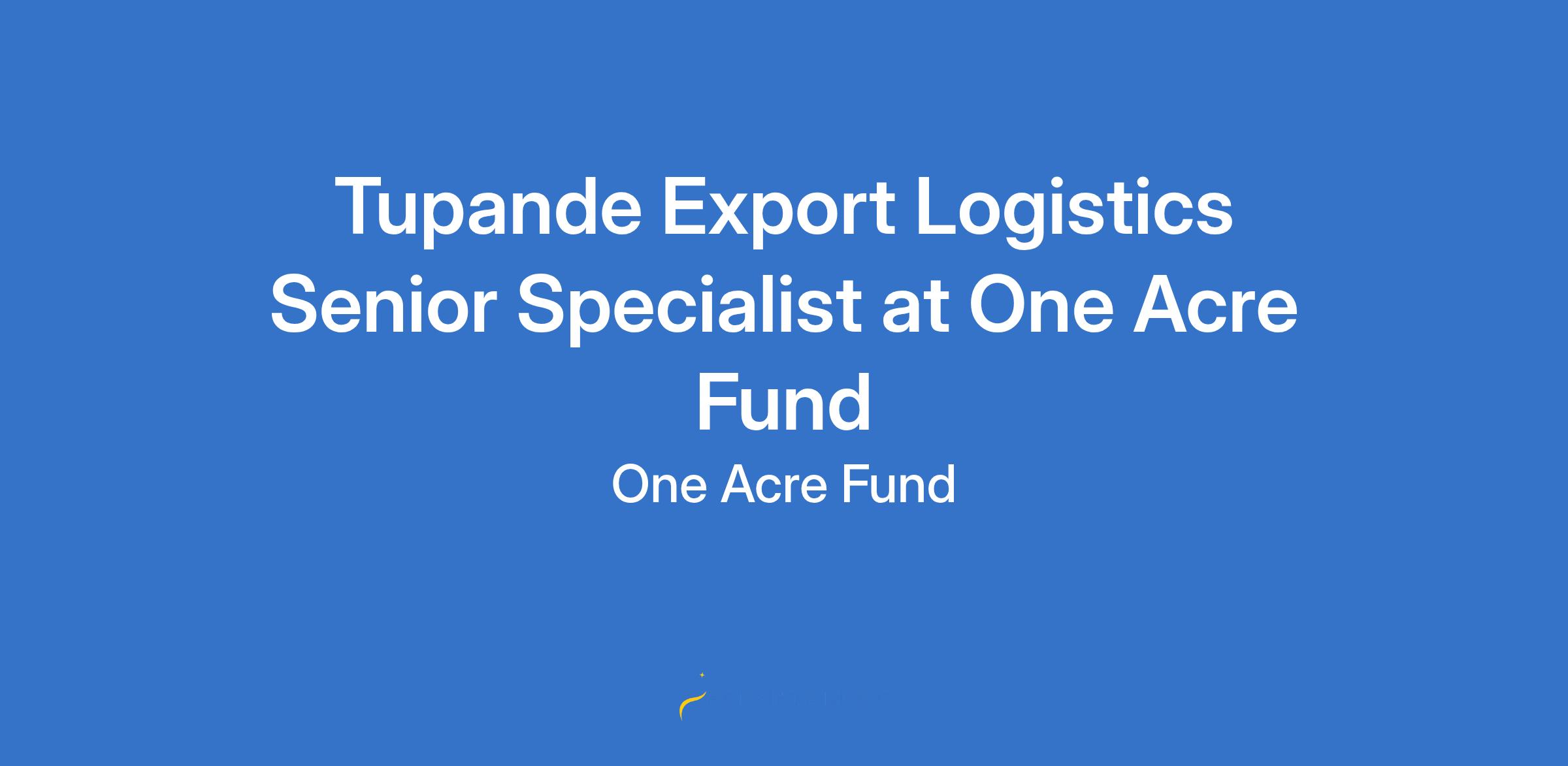 Tupande Export Logistics Senior Specialist at One Acre Fund